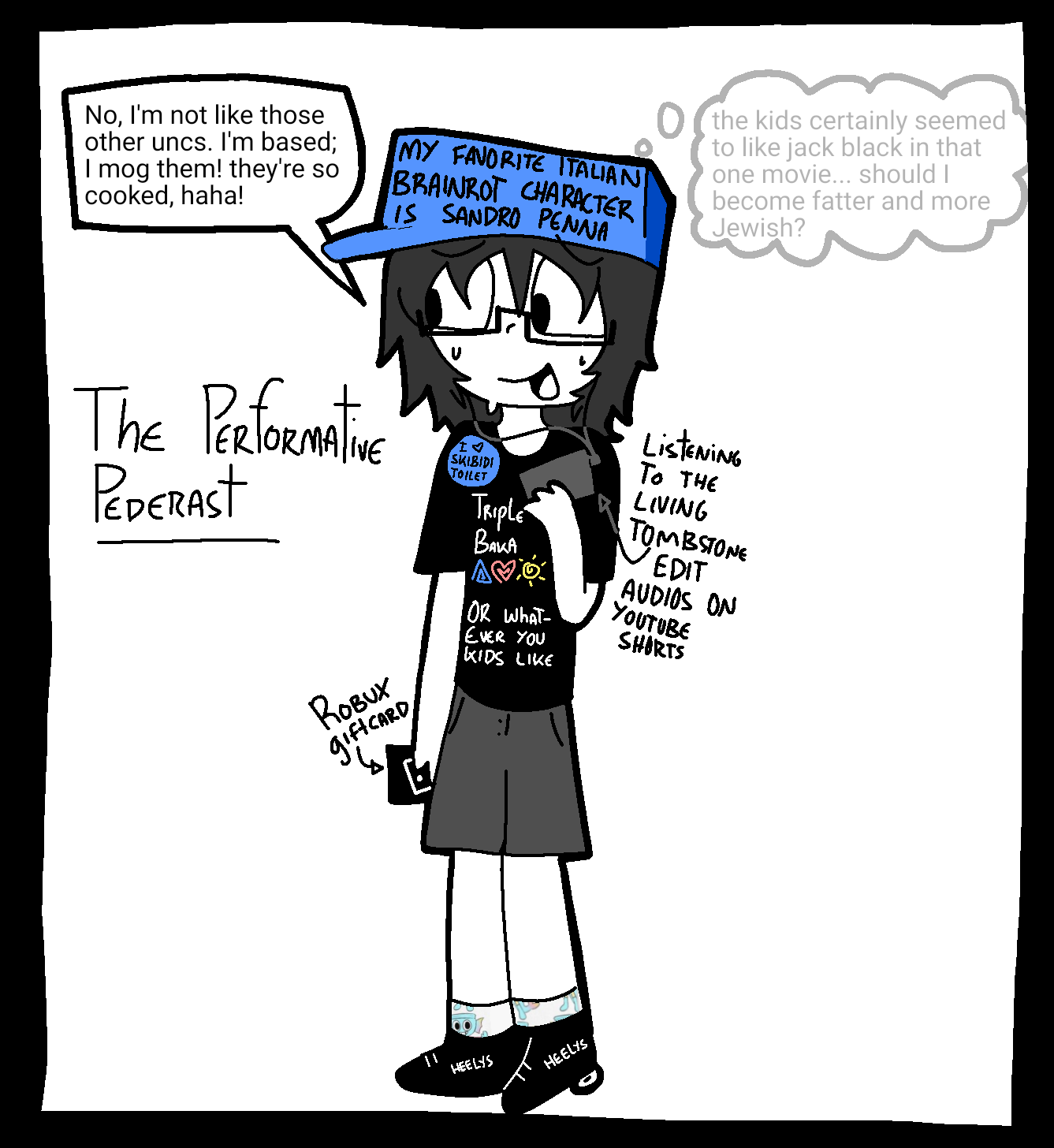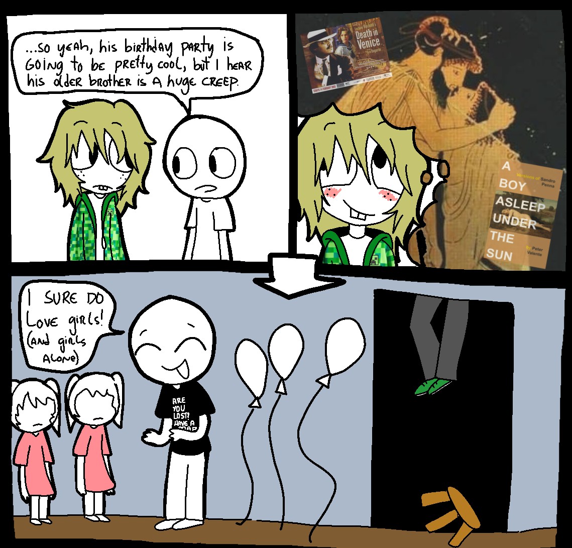 >>817841I think the pedophile character is supposed to be a parody, but the kid with the creeper hoodie makes me second guess the intent behind the characters. They're funny though