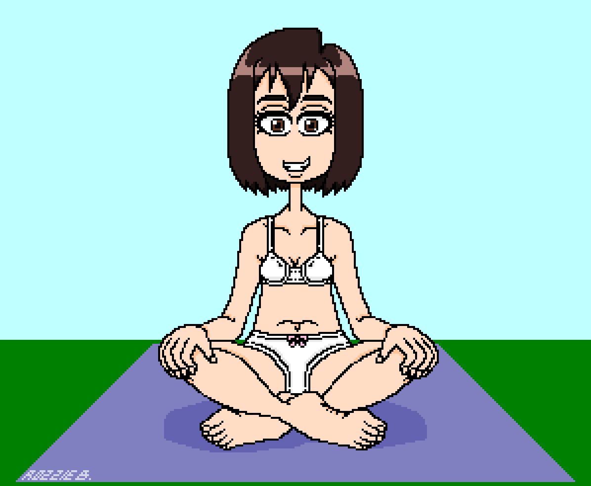 >picrel gina from undead unluck sitting on her bed with a hot chocolate