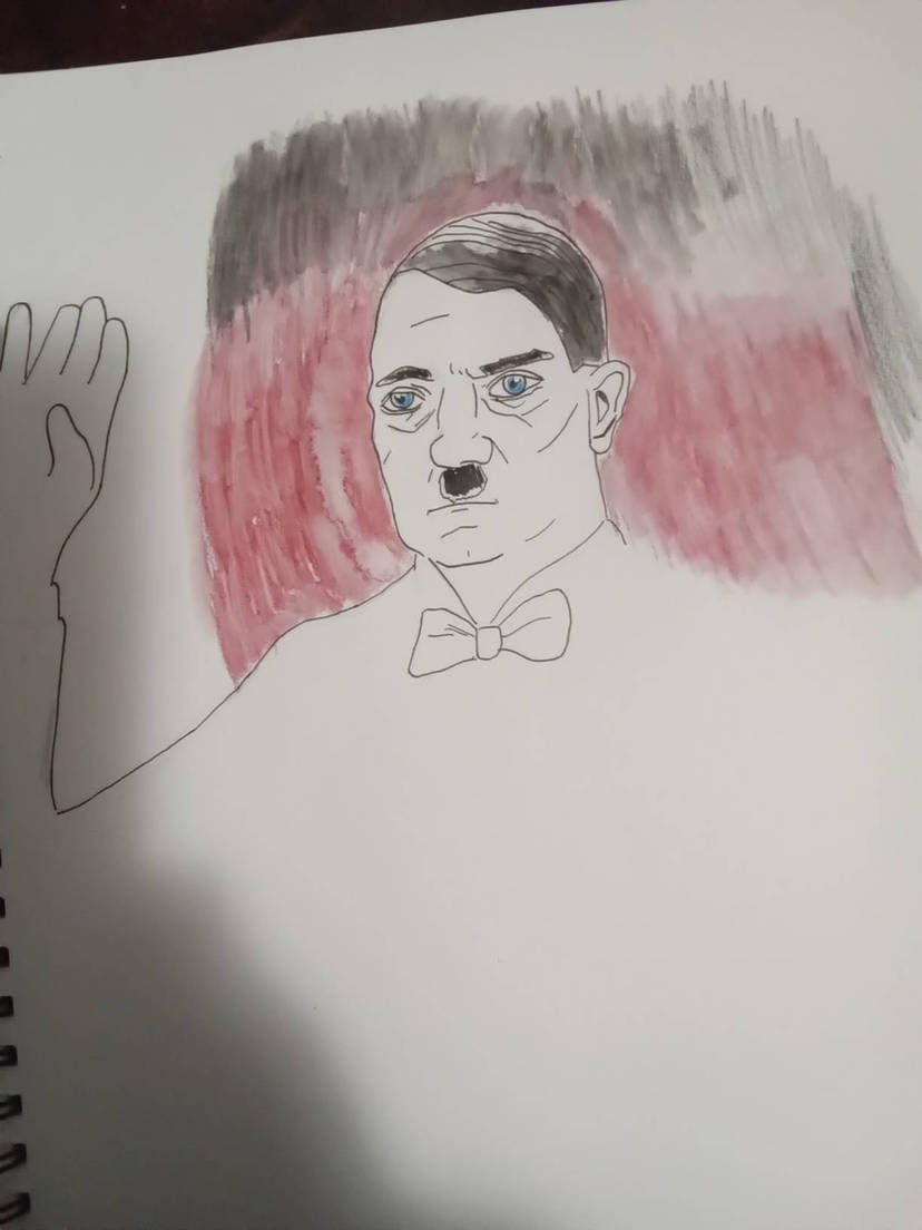 I saw a lot of portraits of Stalin on deviant art and other art sites, so I decided to draw Hitler. It was just a basic portrait, but I didn't do charcoal, or pencil because I am always trying to get better at drawing in pen. I think it's actually close to being an accurate recreation of a Hitler photo, it's just for some reason it looks really plain and boring (I don't mean the obvious, because it's just a basic portrait) I mean, his face doesn't really stand out for some reason, I don't know if it would be fair or accurate for a comic book artist even. But I digress.