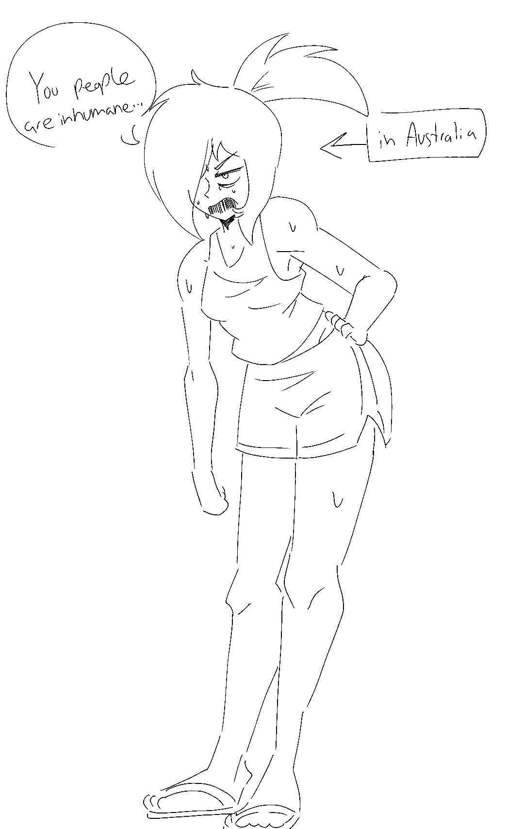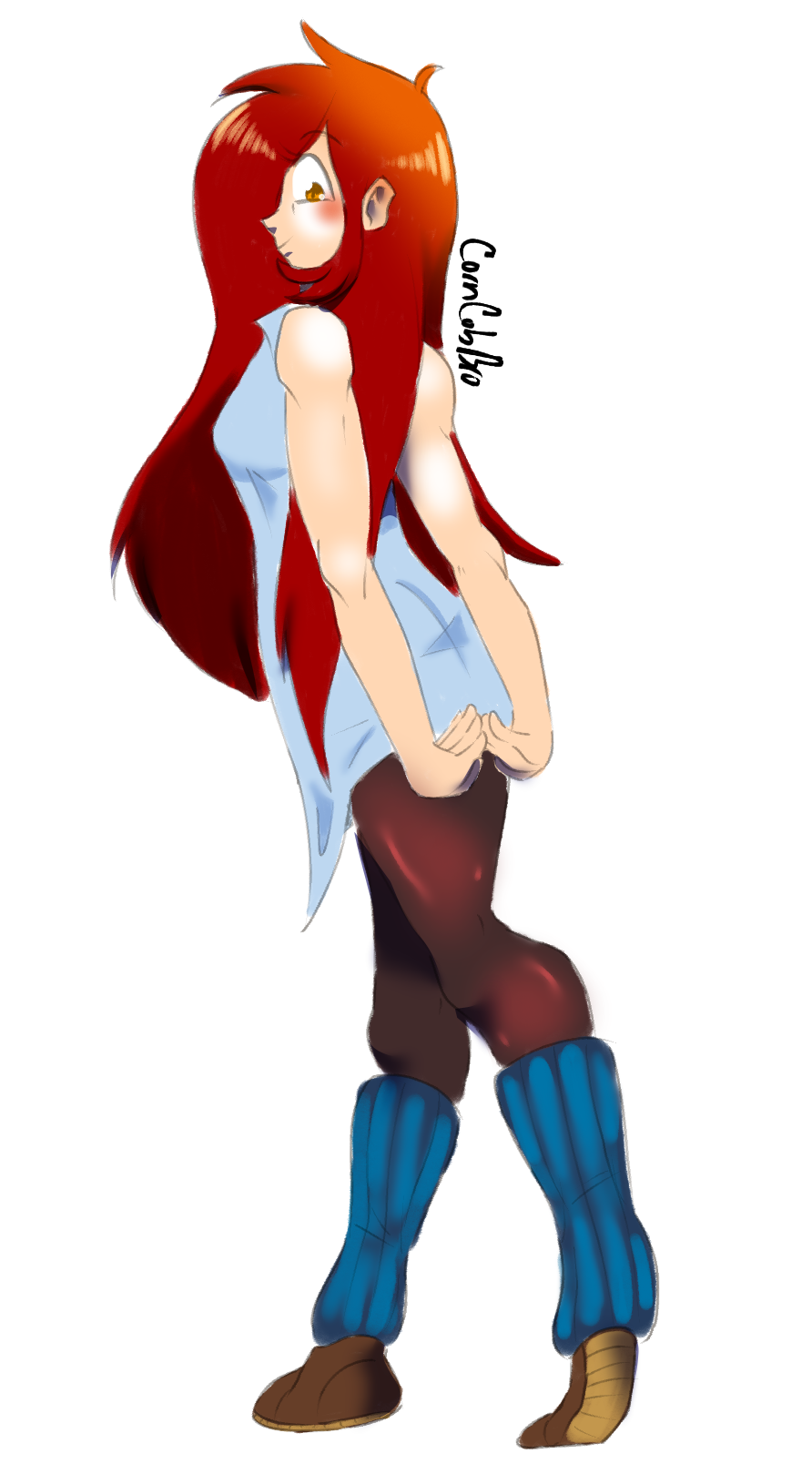 >>830183No. Draw her in a white sun dress, sun hat, and sandals, instead.