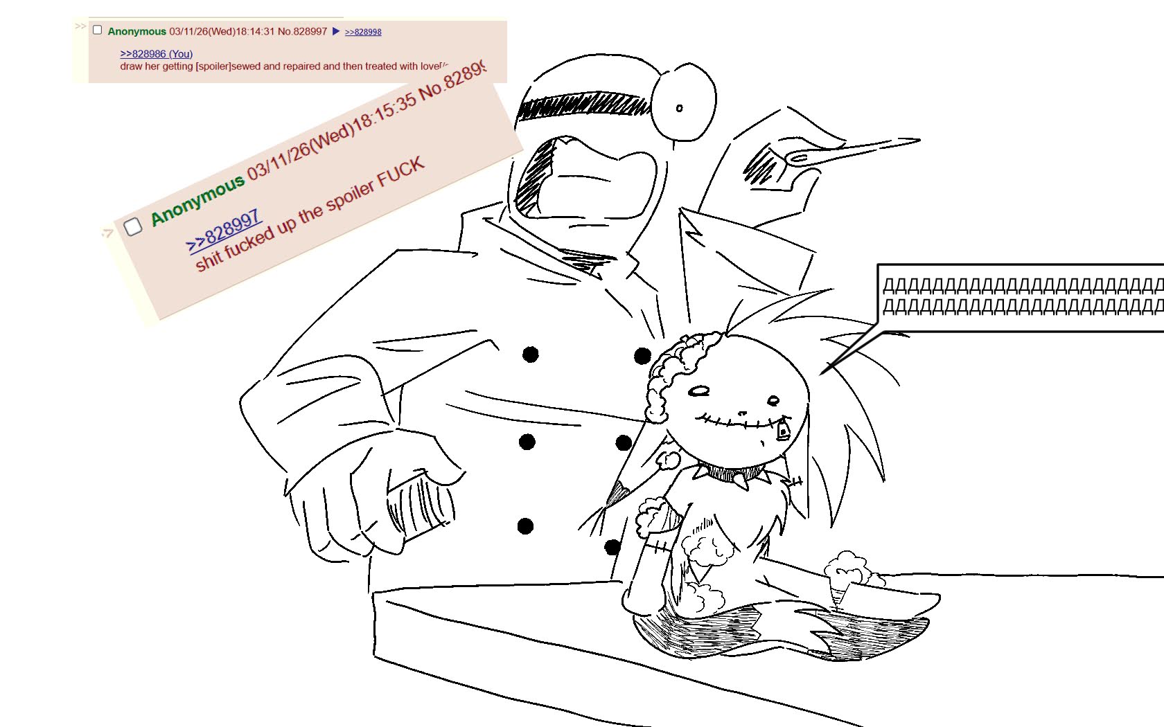 >>828986draw her getting [spoiler]sewed and repaired and then treated with love[/spoiler]