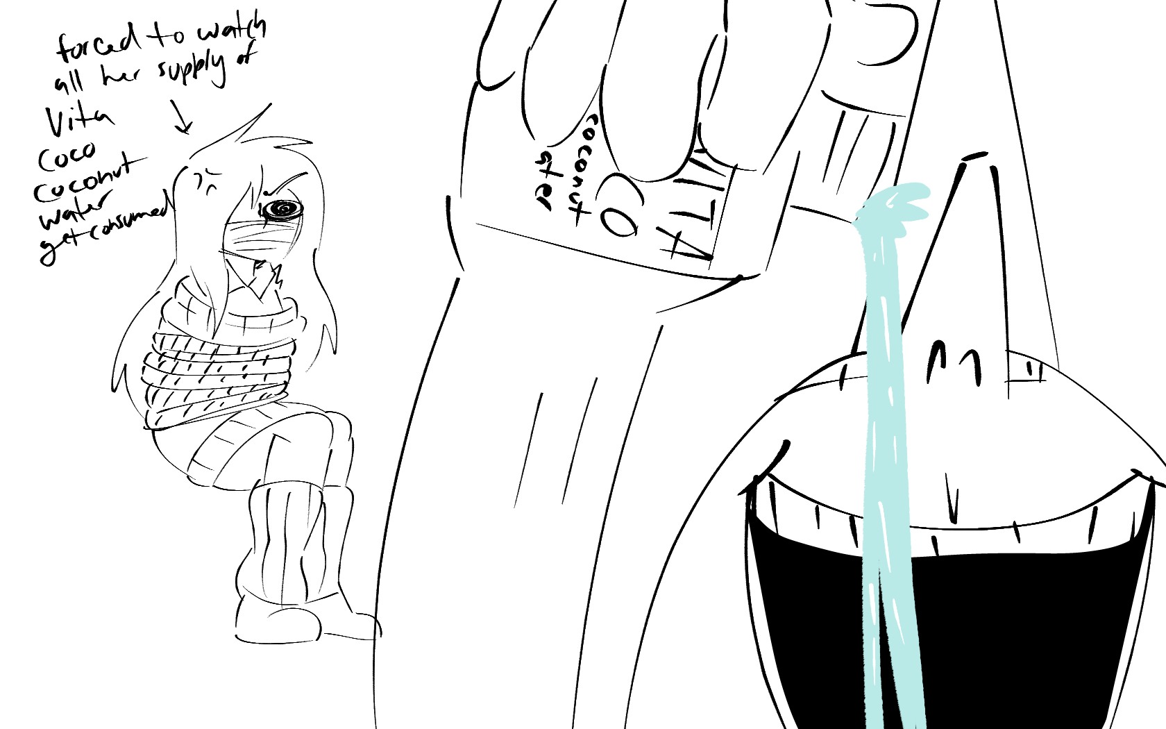 >>828986Ana all tied up in a rope with her mouth wrapped by a cloth.
