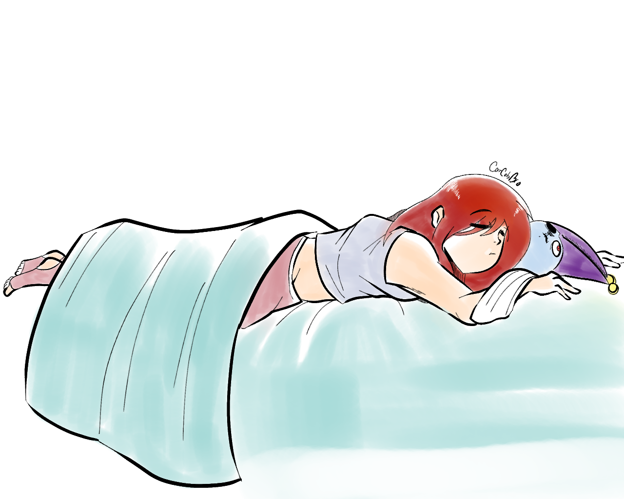 >>828986Draw Ana in this outfit sleeping on the bed while cuddling Illwill.