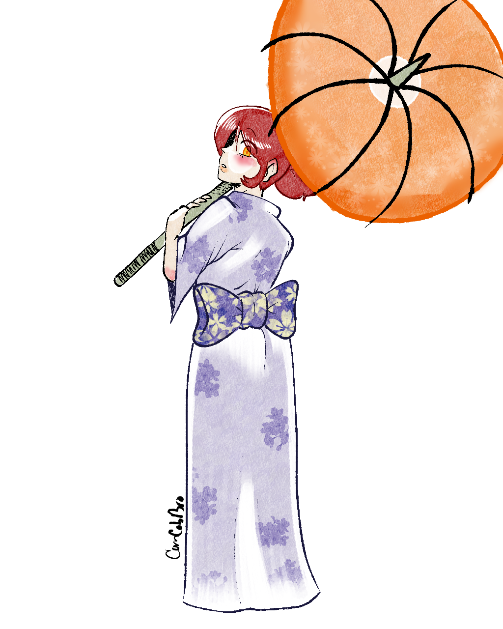 >>828986Ana in a yukata holding a wagasa.