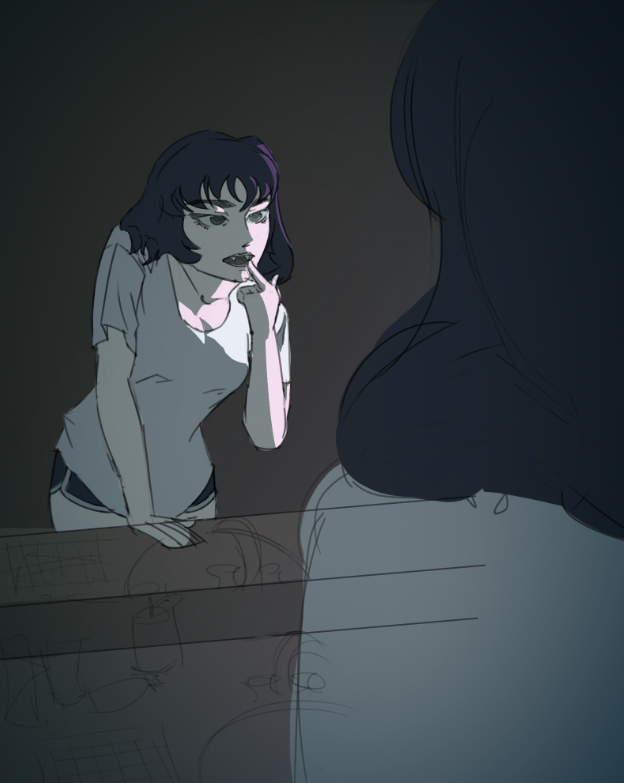 >>7909854whoa, awesome work, it came out so well, and the storytelling’s great. you embedded so many fun details, like the labels, the shape design of the door, the light fallout in the liquid on the second obscured figure, the military-grunt style of clothing, the broken capsule, the line of broken glass and outstretched hand - to the viewing window framed by the focally leaning janitor’s legs-and-broom - to the just-opening door framing the escaped specimen?/infected human?..so much work, efficiently invested in all the most ideal places, great job.i really love it.