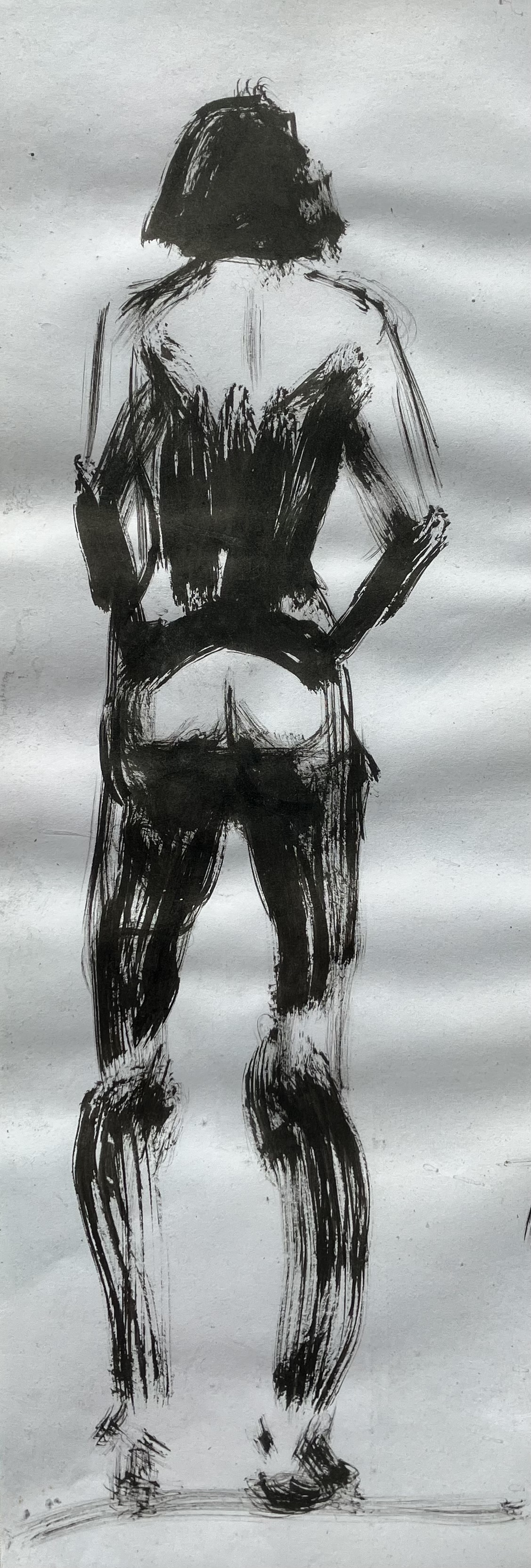 Been experimenting with ink and brush, took it to a figure drawing session and it's great fun. Challenging to get the brush juuust wet enough but not too wet. This is one of the 30 drawings I did in the session. Just india ink and just one brush.Don't know how to get the waves out of the paper though. Maybe mist it and stretch or flatten it.