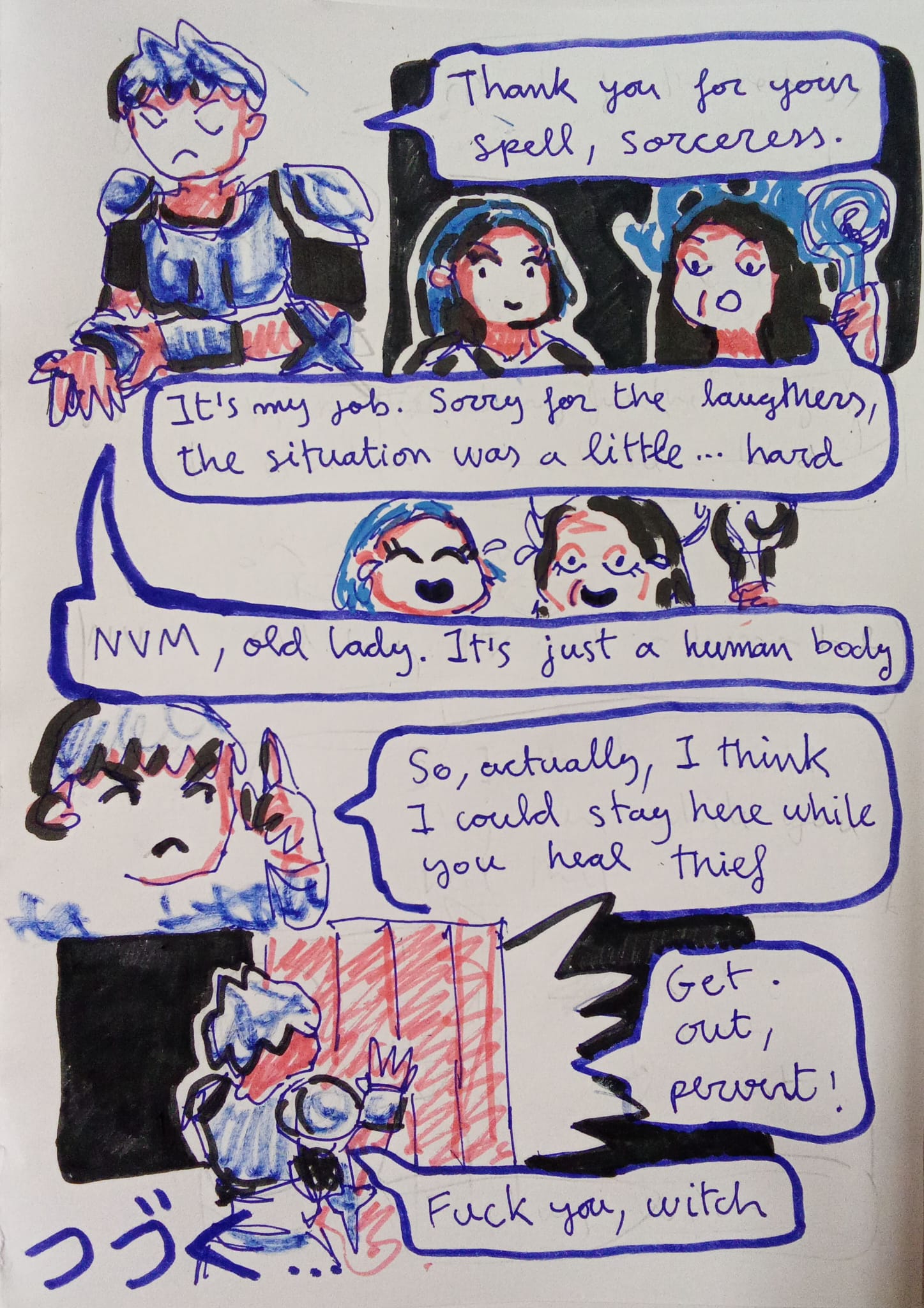 I am drawing some comic and i'd like to share it with you all in real time. I have 4 Pages now, and i plan to draw 2 or 3 tonight. Ask questions, critizice, as you want