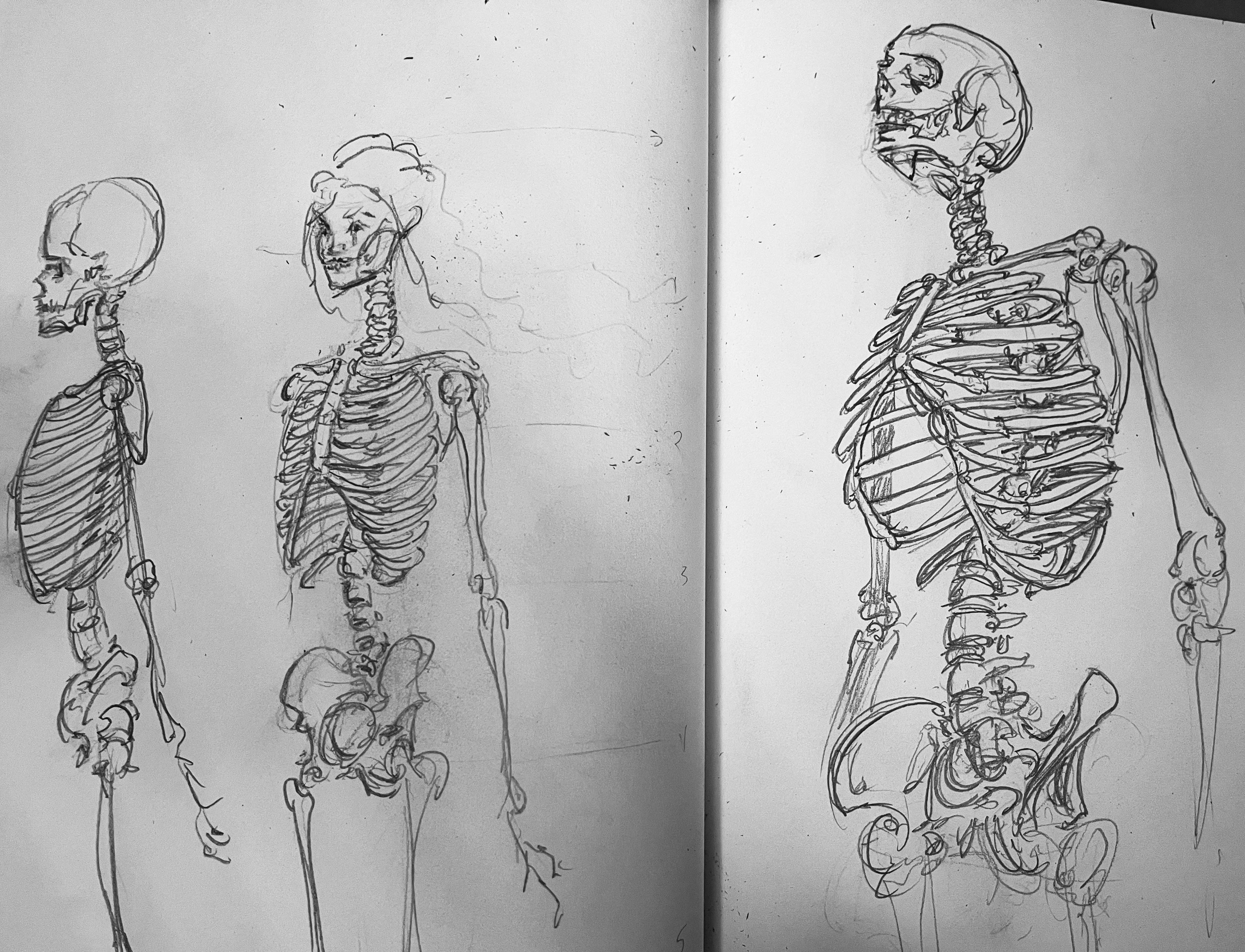 I’ve been really frustrated trying to draw figures so I started drawing skeletons. How do you even begin to draw figures? I can’t figure (heh) out what I’m missing. But skeletons are really fun to sketch.