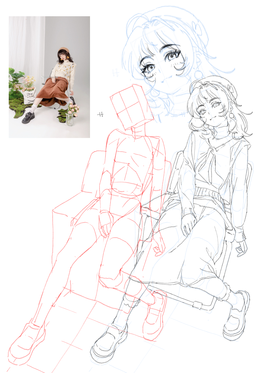 >>7802114Noticing afterwards that the I tended to draw the head taller and less wide compared to the reference. Usually when I draw the head I start with a sphere but I get lost with how to 'find' that sphere on the reference, especially in anime styled drawings. Does anyone have any tips for this?