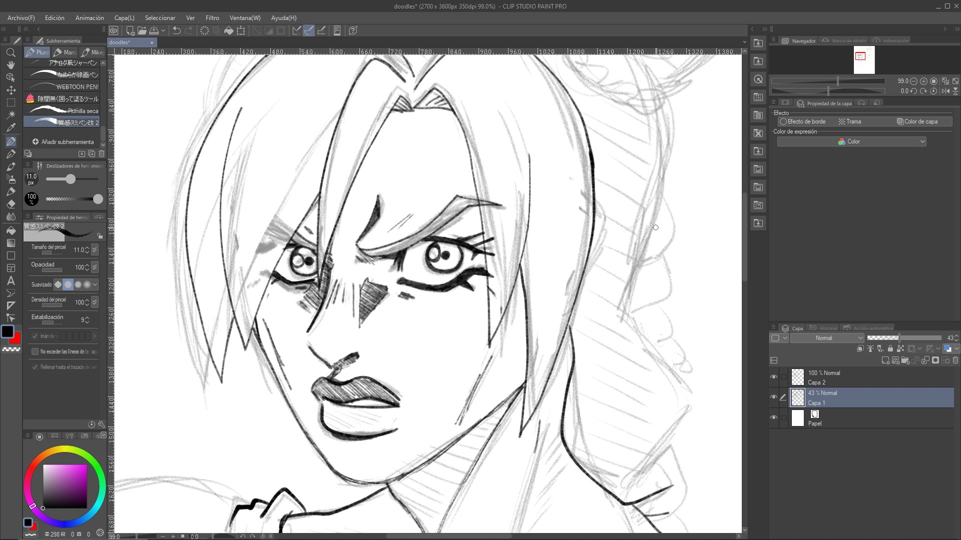 Tried going for a more JoJo-like style.The face was actually really fun, even if I was just throwing lines around without much sense.But once I started the hair and the body I just went, “yeah, screw this,” and stopped for today.
