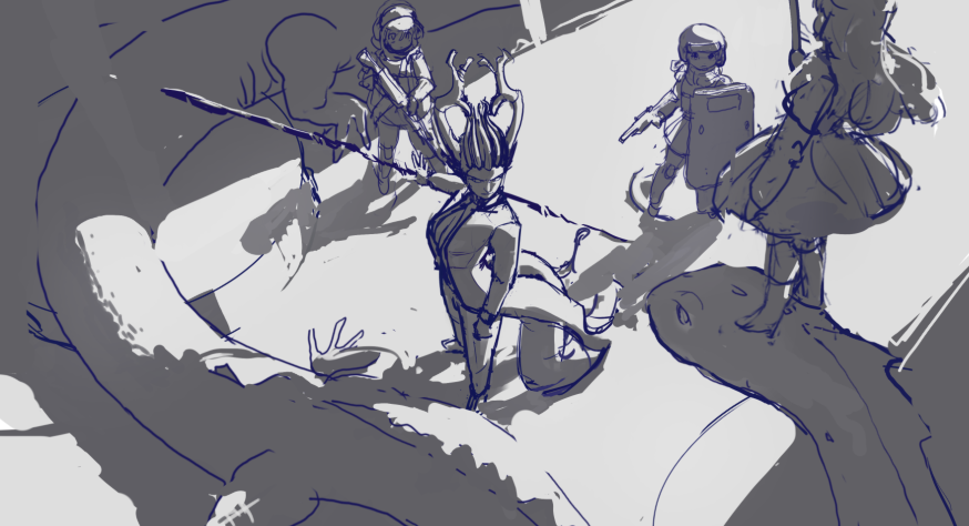 >>7756119Timed sketches. If you feel like a killer is breathing down your neck when you draw, it will make your base speed faster. Paindul at first, but it helps after a while. https://quickposes.com/enUse this site every day with at least one session before drawing. >>7756267nta Lean anatomy before you do this shit and you would be able to know what the hell you're talking about.>>7756363Having boobs and seeing this gives me physical pain.>>7756383Your value range isn't dark enough, but you're on the righttrack.>>7756446No.