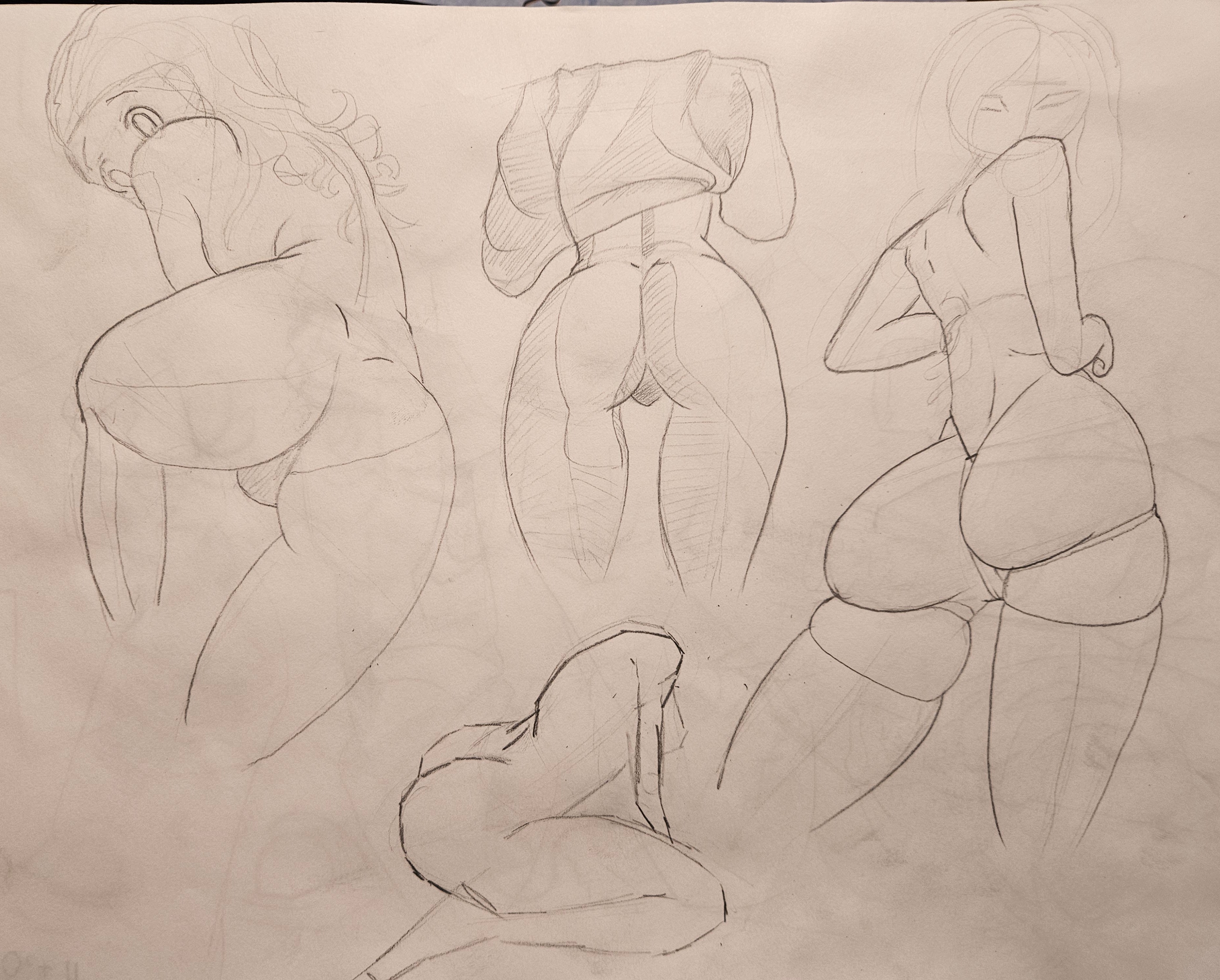 Today's figgies, trying out a new pencil>>7756490I like the subject but I think she's not sufficiently distorted by perspective, considering how warped the BG is in comparison