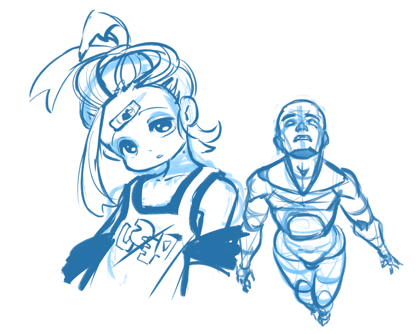 I will admit I was a tinsy bit delirious writing that response>>7756460So the key thing to take away from this is you have to establish what your preferred method of breaking thigns down is. Boxes? Oblong shapes? Whichever it is, tracing over photos is supposed to assist you in adjusting to different heights and proportions! There isn't a "right" way, but moreso a consistent way. You're looking for consistency. Does this method of lines and circles help you in the long run? Also, lower your opacity! This one is using the method I typically use to draw humans.