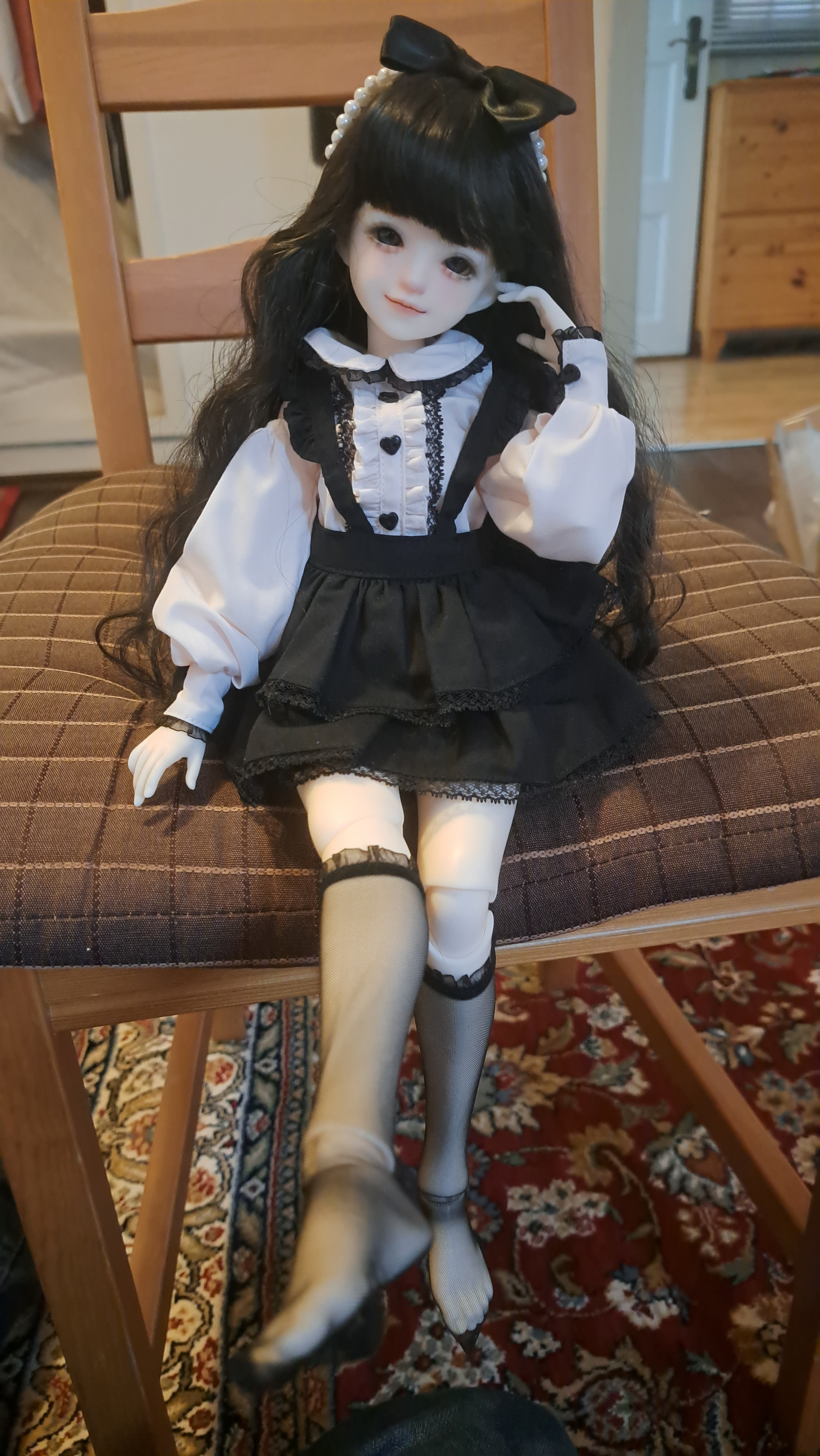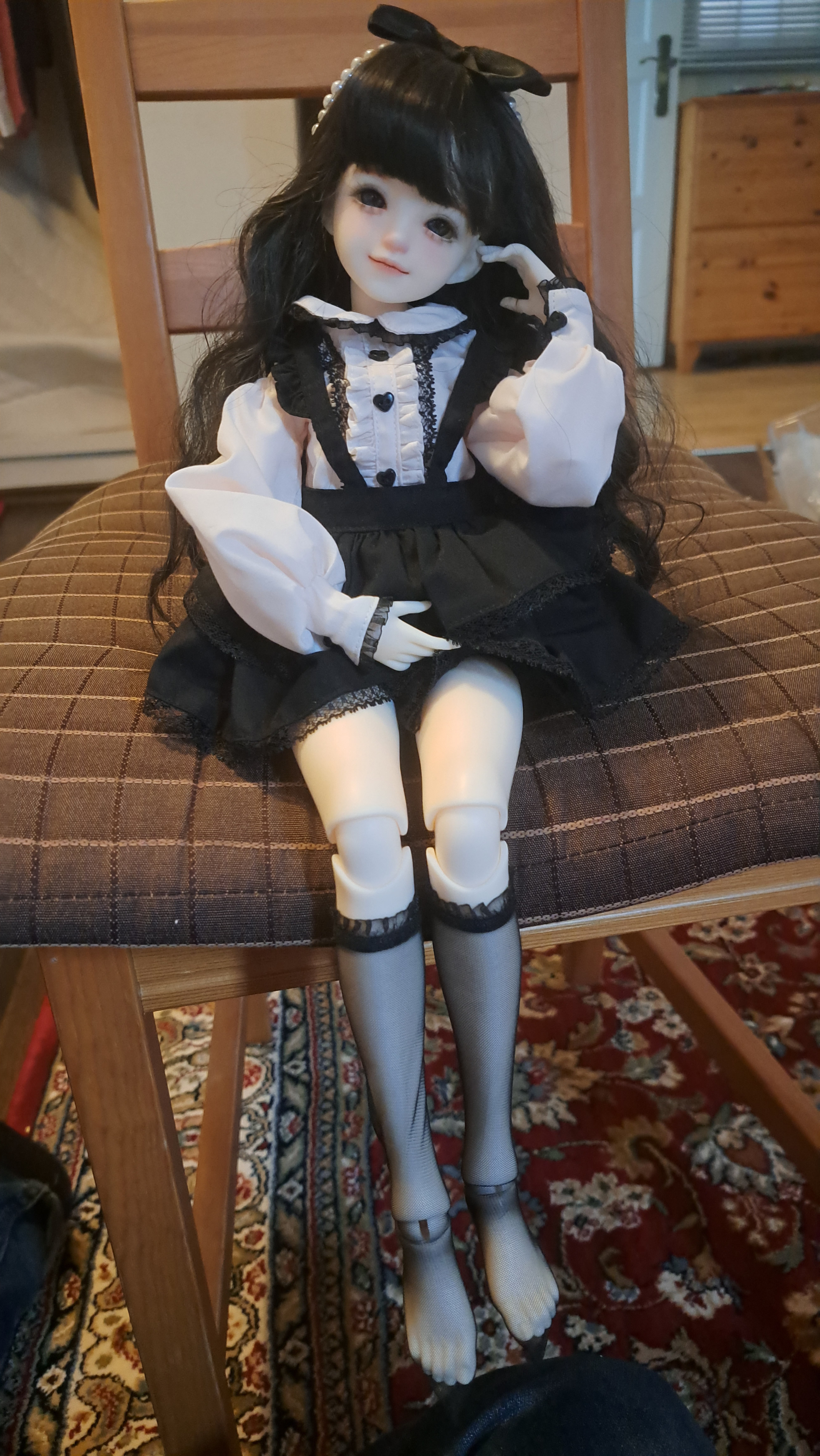 >>7769437Brand: "Asleep Eidolon". Specific Face "Ding Dang" (weird name but its a chinese brand).If you want to buy one there are 1/4 and 1/3 scale options this is 1/4. Be advised that this type of doll is not off the shelf, once you order it will take a few months to be produced + faceup needs to be done too wich can take an extra month (painting the face and makeup on). You can go default company makeup or let someone else do it Then of course clothes and wig are seperate.Finding a store isnt always easy, I ordered through a small us doll hobby store even though I am in europehttps://www.janesdolland.com/product-page/asleep-eidolon-1-4-doll-dingdang