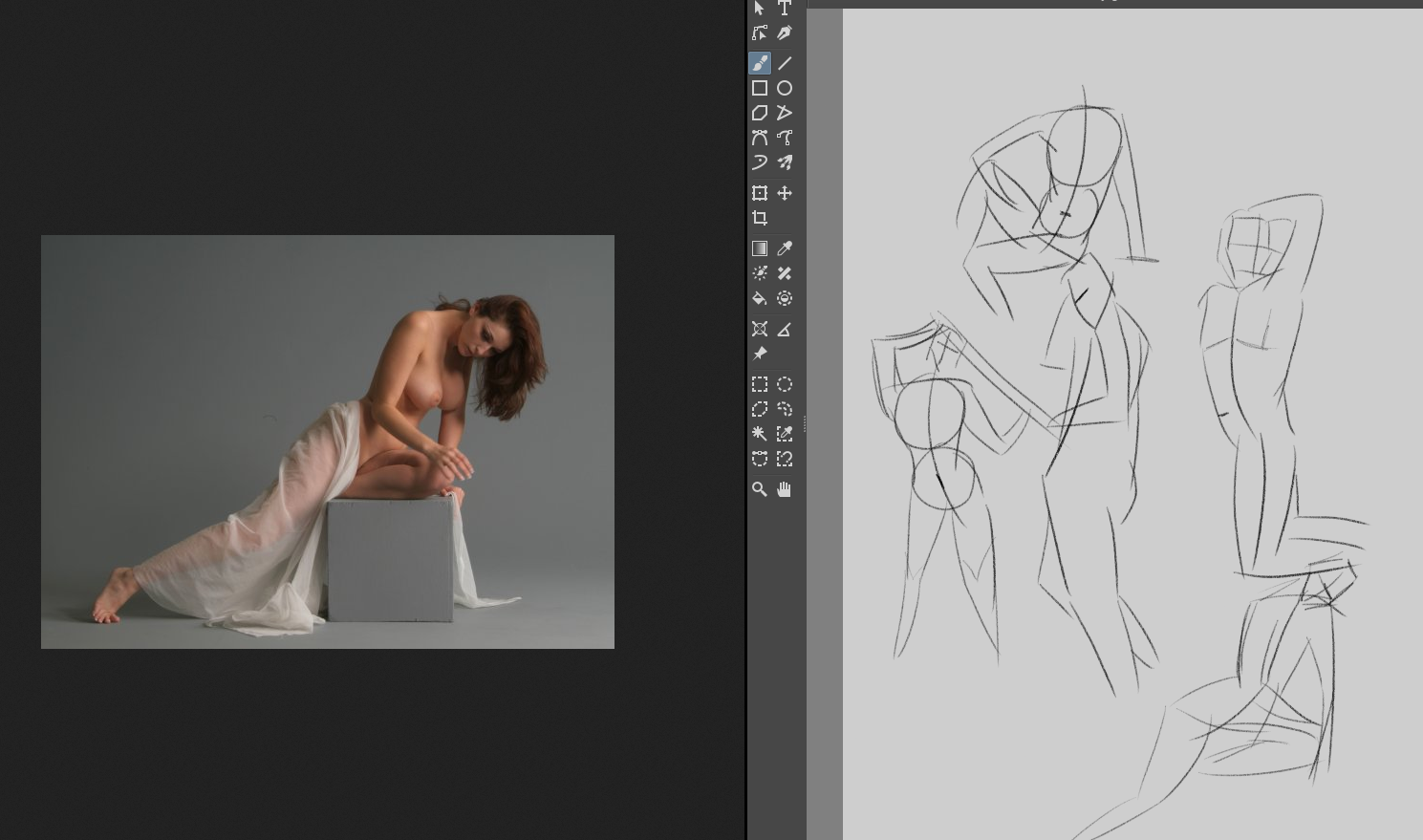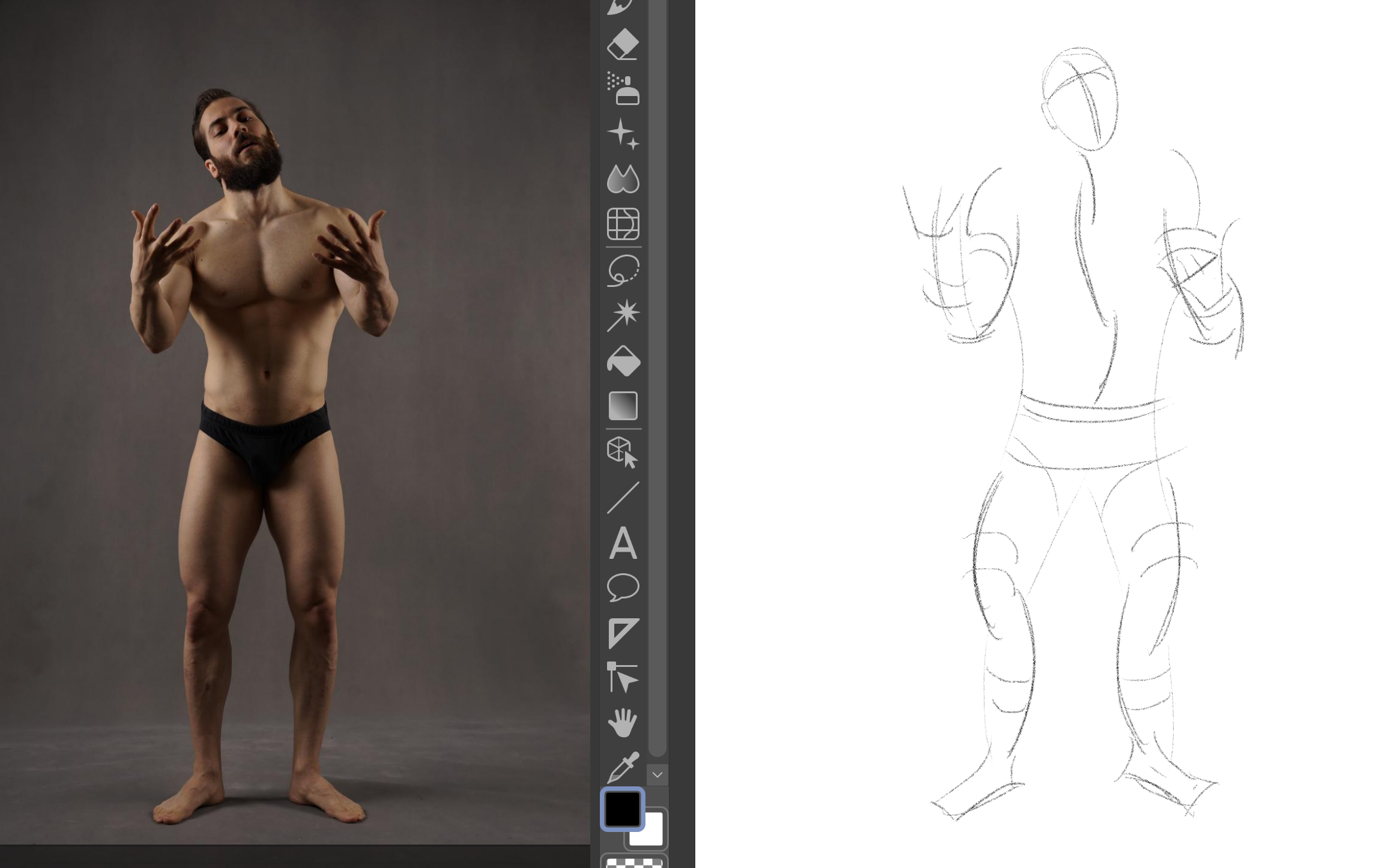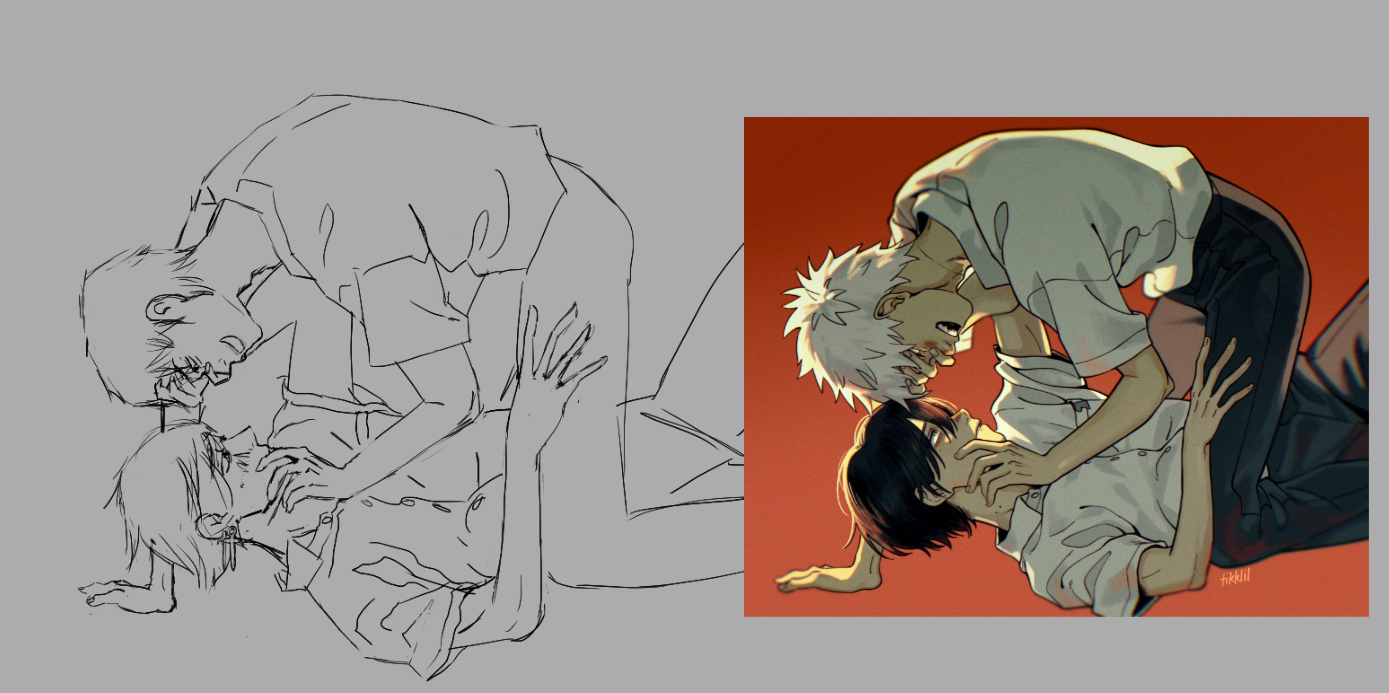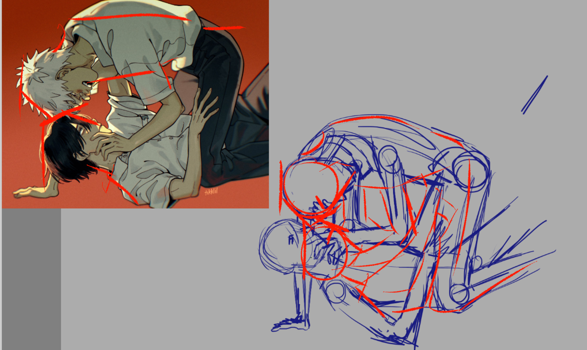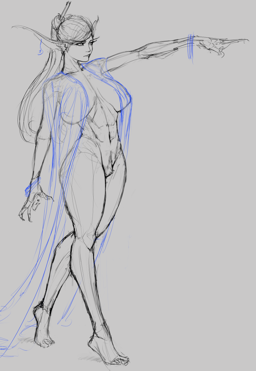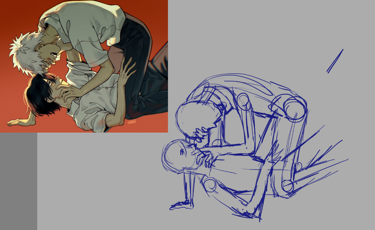 >>7777380I use a model posing app on my phone and traced over it