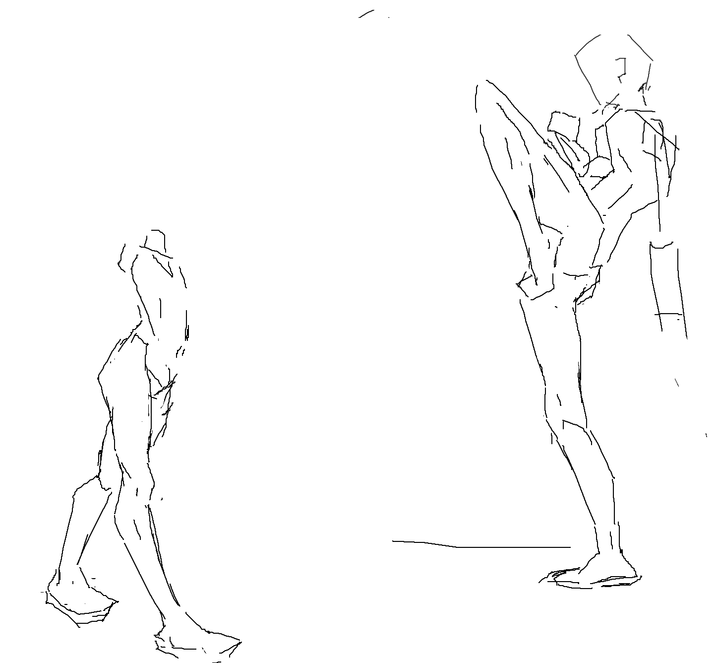 >>7777271Raised leg too long, raised forearm too long and curving in an unnatural manner. Look at yourself in the mirror or take photos of yourself and find out yourself.