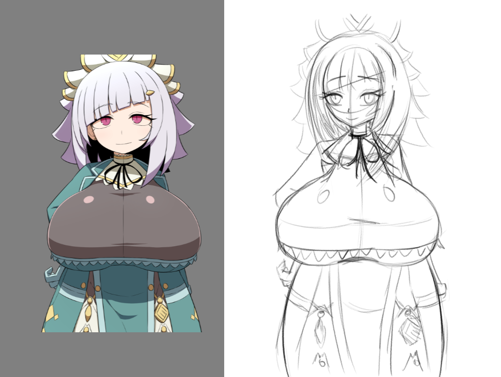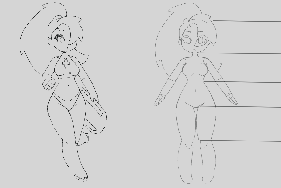 >>7777410So i see the rib cage is smaller, the breasts bigger and the face moved around, got it