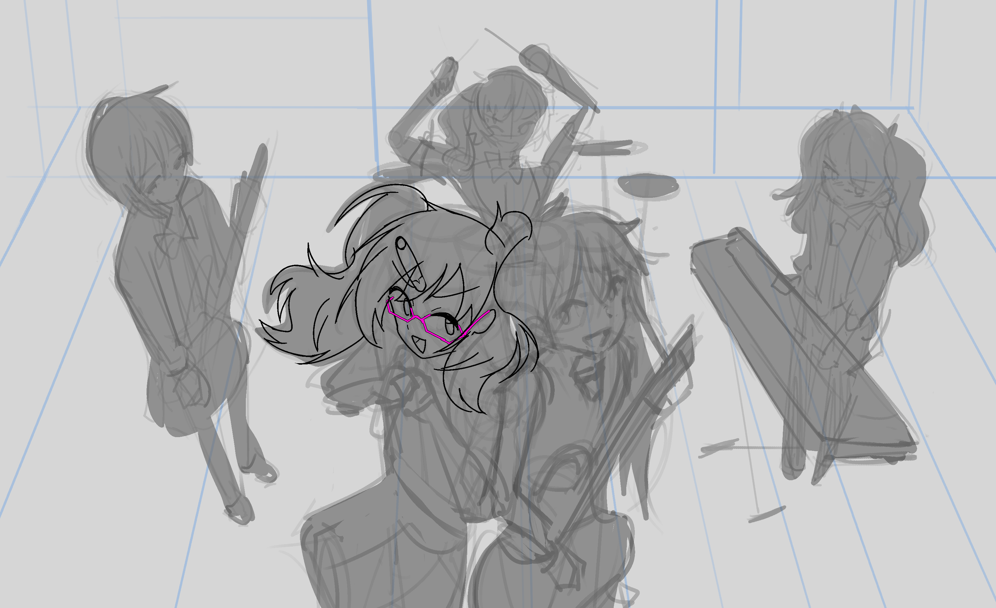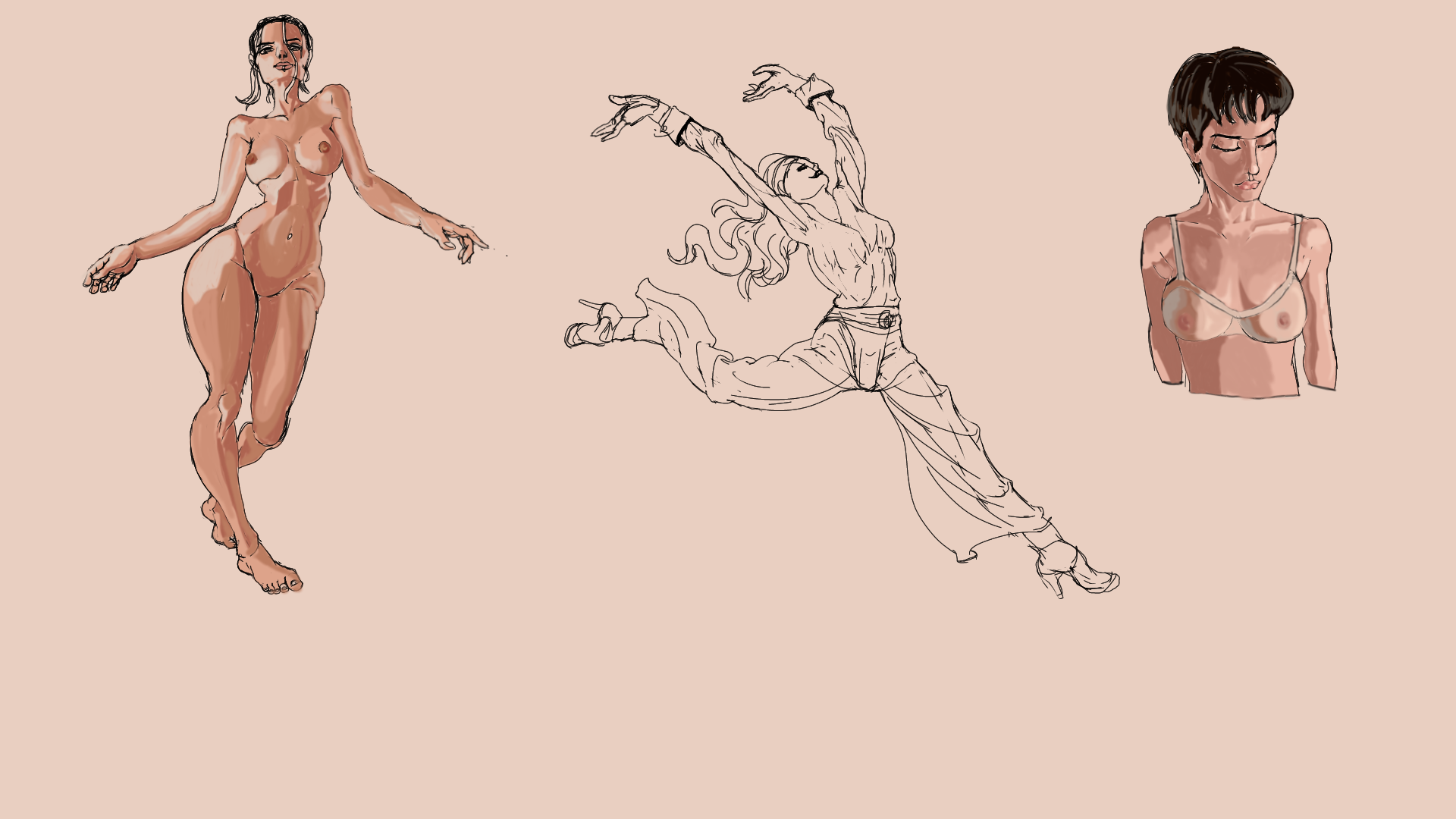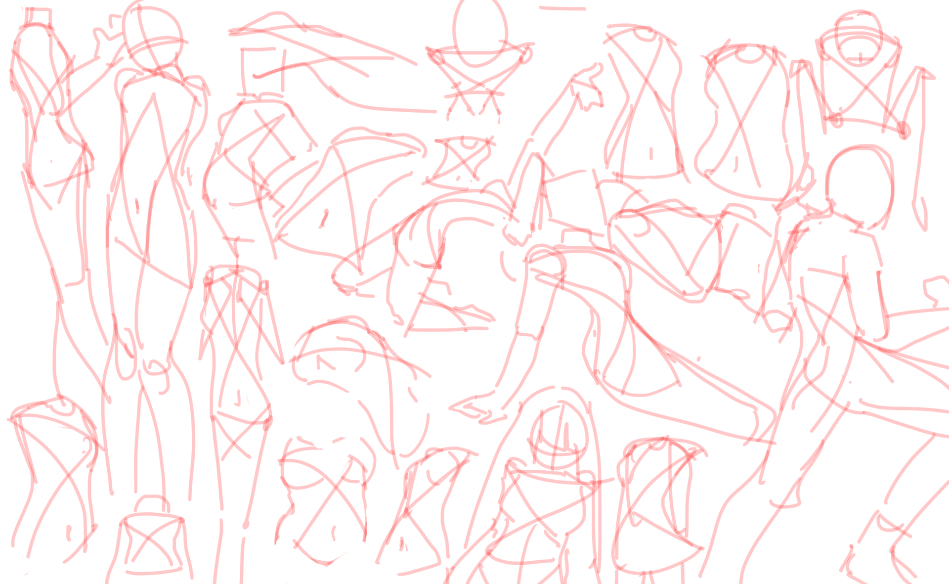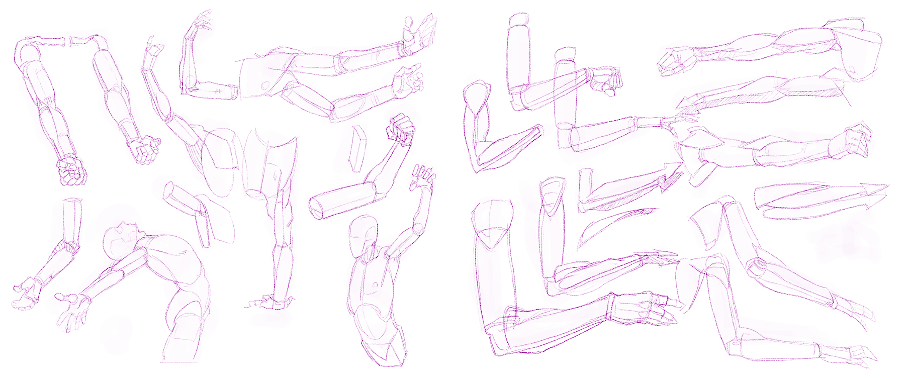 >>7774431sketches from referencesometimes timed, sometimes not... the time isn't important, trying to get the basic form first before going into details. I don't think I'm improving this way.