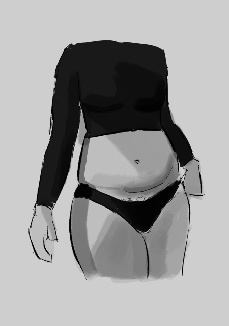 >>7777361There’s a lot off.You need to think about how the ribcage is a 3D form and how it looks from below. Unironically start with a box if you have to