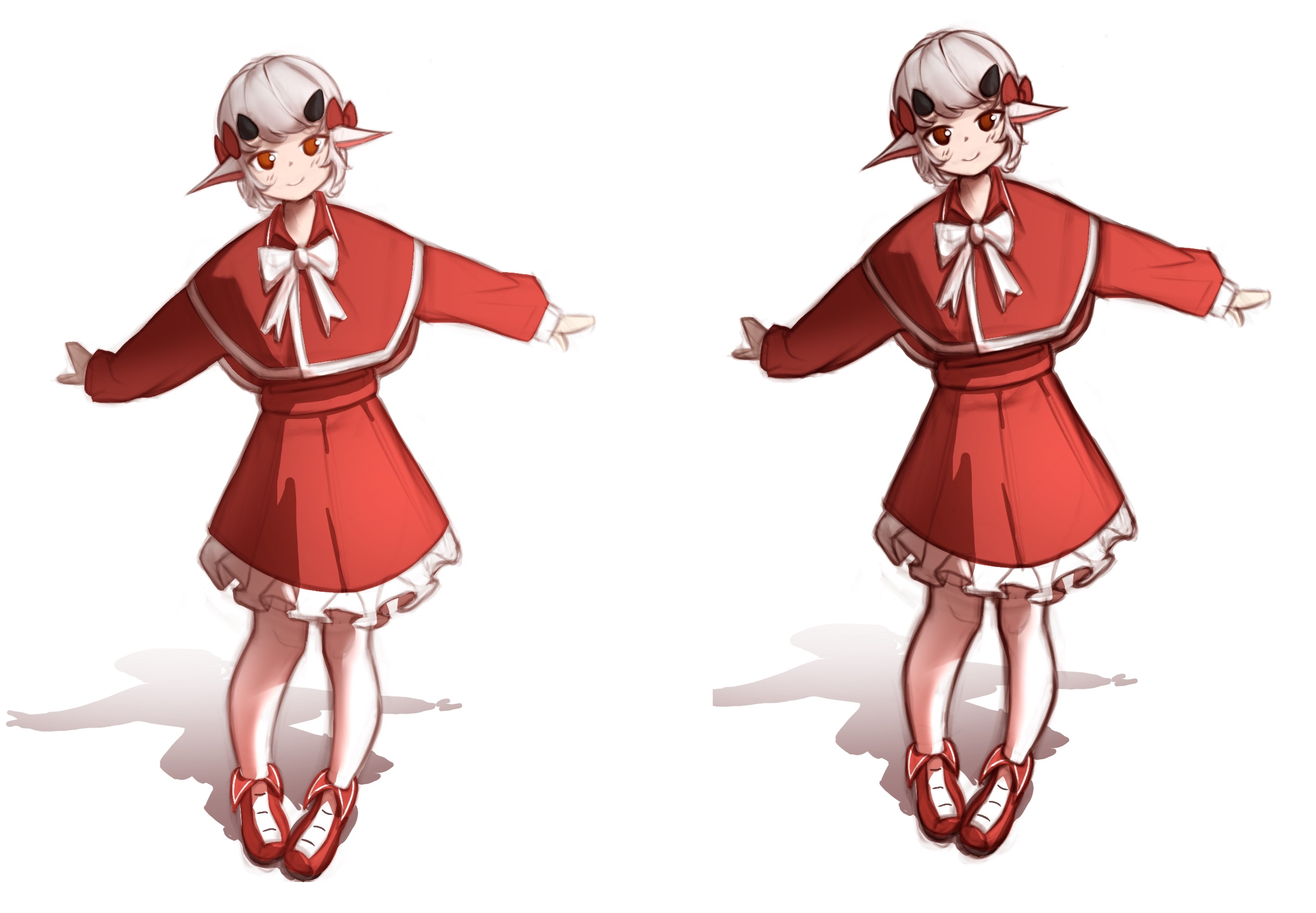 >>7777180Looks difficult. I haven't really learned perspective but isn't it kind of all over the place?>>7777187I tried resizing it, maybe it's a little big. Forgot to get the neck though, so that's a bit too big now.Good job on the clothes.