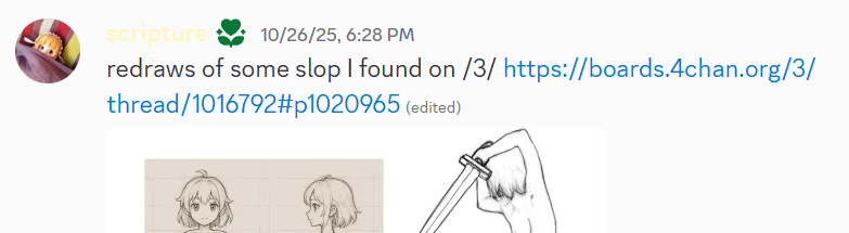>>7778823ty! It was very upsetting to find out that someone had saved my shitty scribbles.maybe someday i'll debeg myself enough to be saved by people, but not today