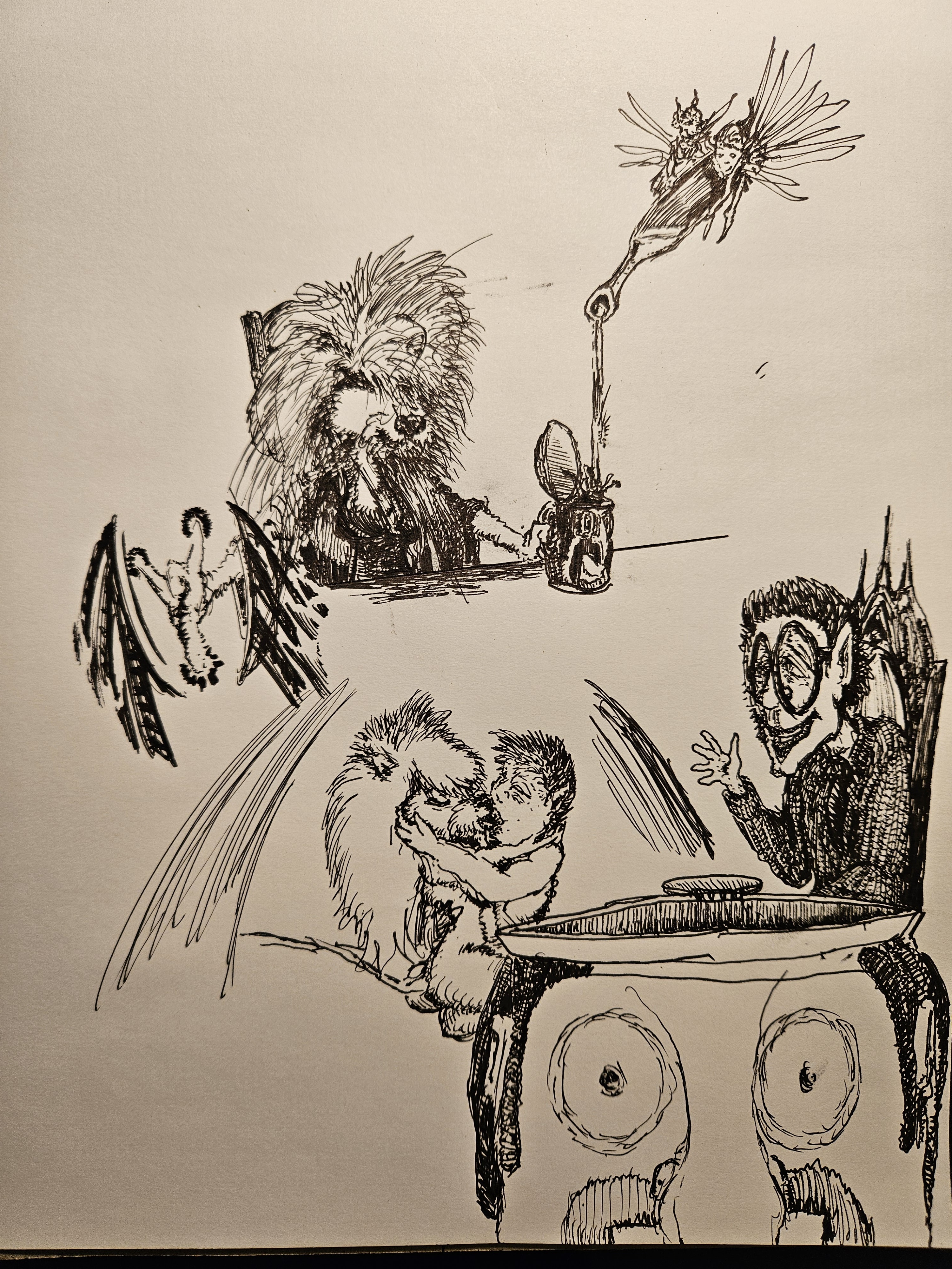 I have a whole channel of Doodles, come to think of it. Technically a series of hyperlapse videos of me discovering what will appear under my pen today after a bowlful of inspiration in the form of Franken-bud. And when I like how a drawing is going, I add to it on subsequent days. Composition by the seat of your pants. Undiscovered countries. Wild Whimsy tossed down like a thunderclap onto the unsuspecting white expanse. A bullet spray in Posterity's face.https://youtu.be/I6jK6hjs5EI?si=Y_9U7lPY26E6r6r3https://youtu.be/boPn06K7Rjo?si=lhFAOwxnLa5hRfbnhttps://youtu.be/GjkOrOQMJwU?si=6rr2dKG1jgUf0YThhttps://youtu.be/e7MtPVqKtRw?si=iChC9-_dLWoS2i7K