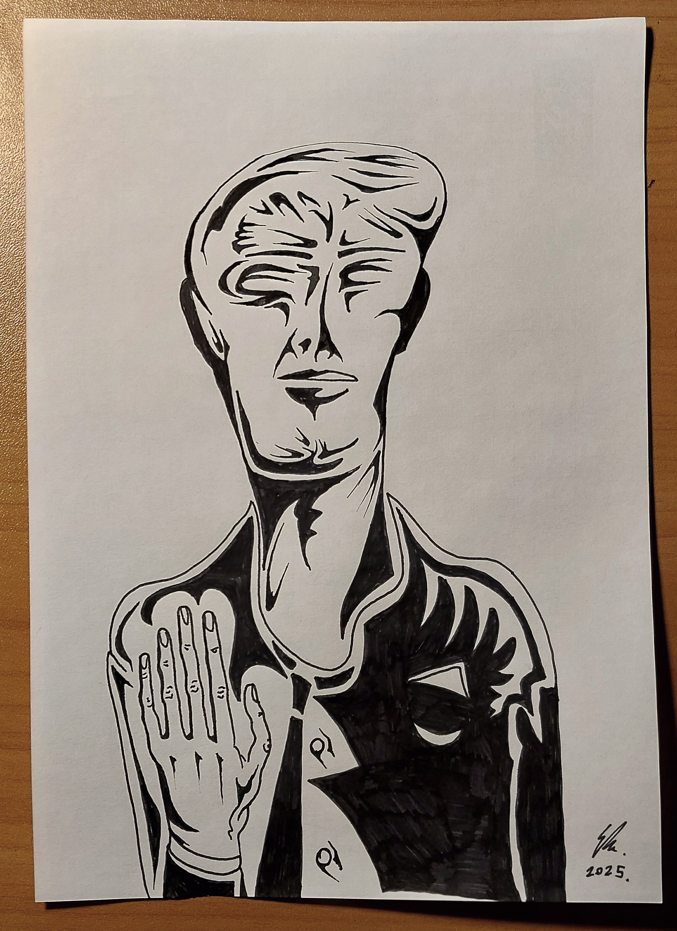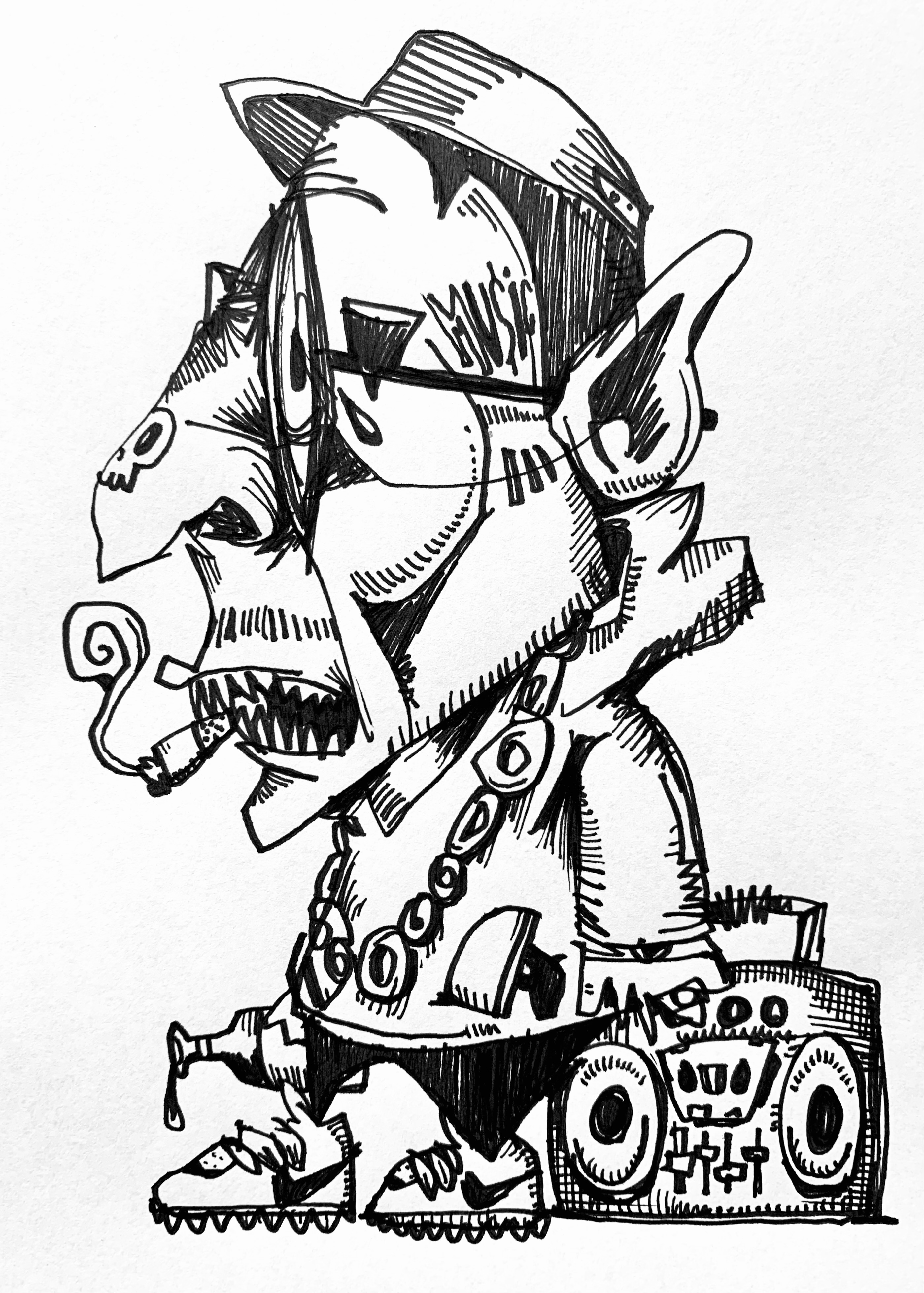 Back to work. New job. Finally caught up all the shit I had to do and had time to kill. Haven't regularly drawn in months. Pilot G2 pen on copy paper.