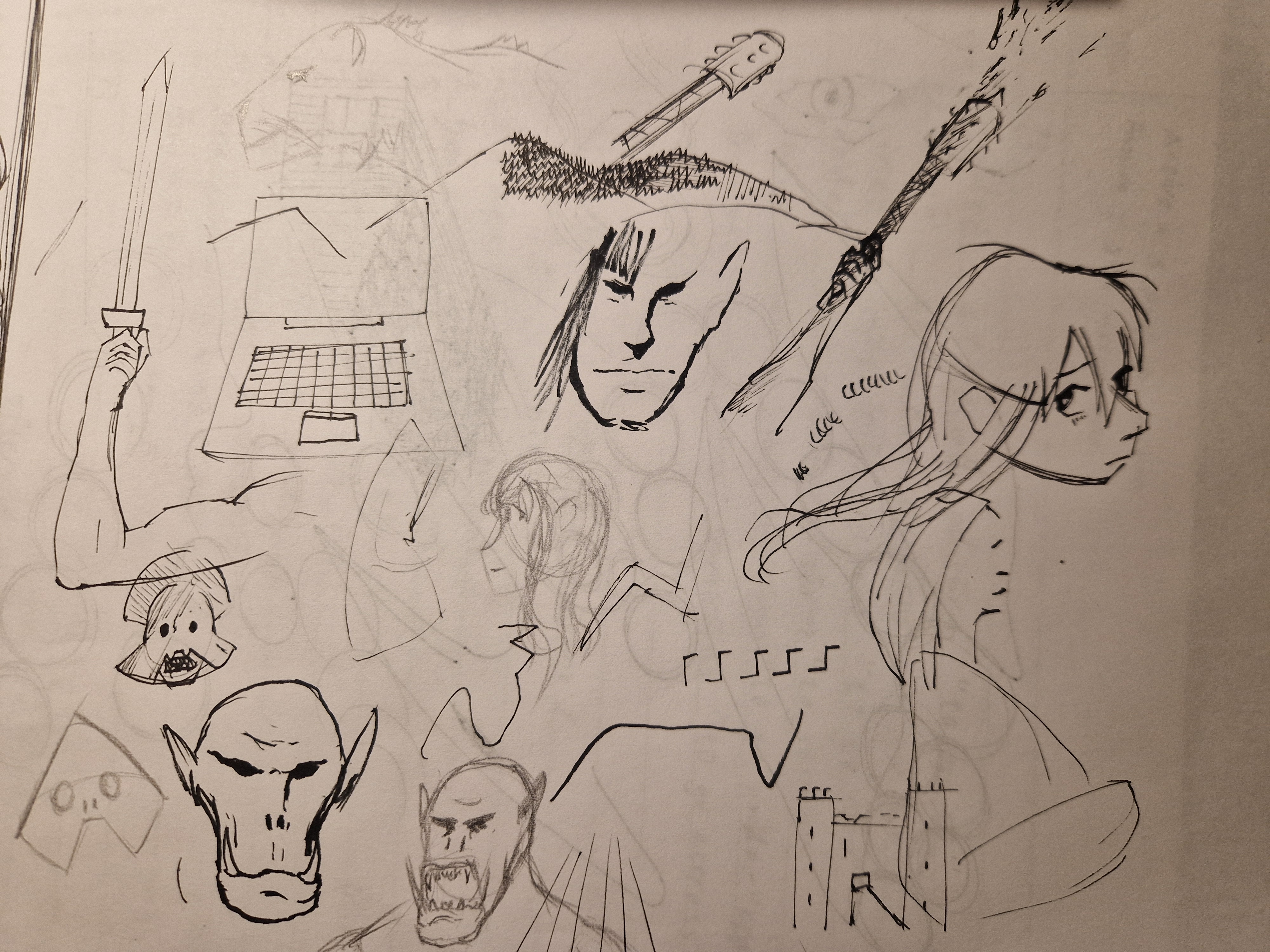 >>7778184Doodled some aliens and Dark Souls-esque characters.