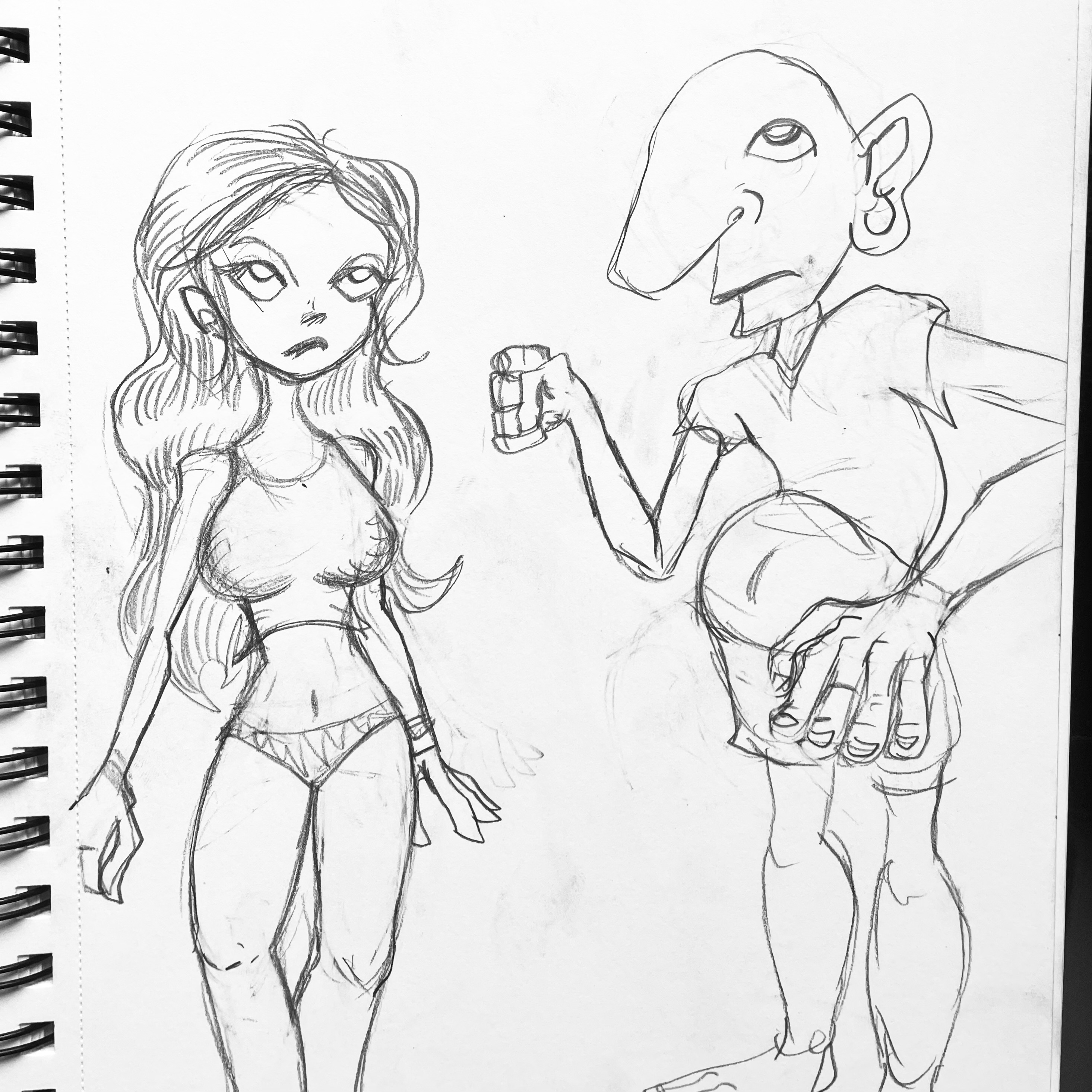 some really shitty doodles from today. It's a very small amount but it's better than nothing I guess. Trying to get used to drawing humans again. Struggling