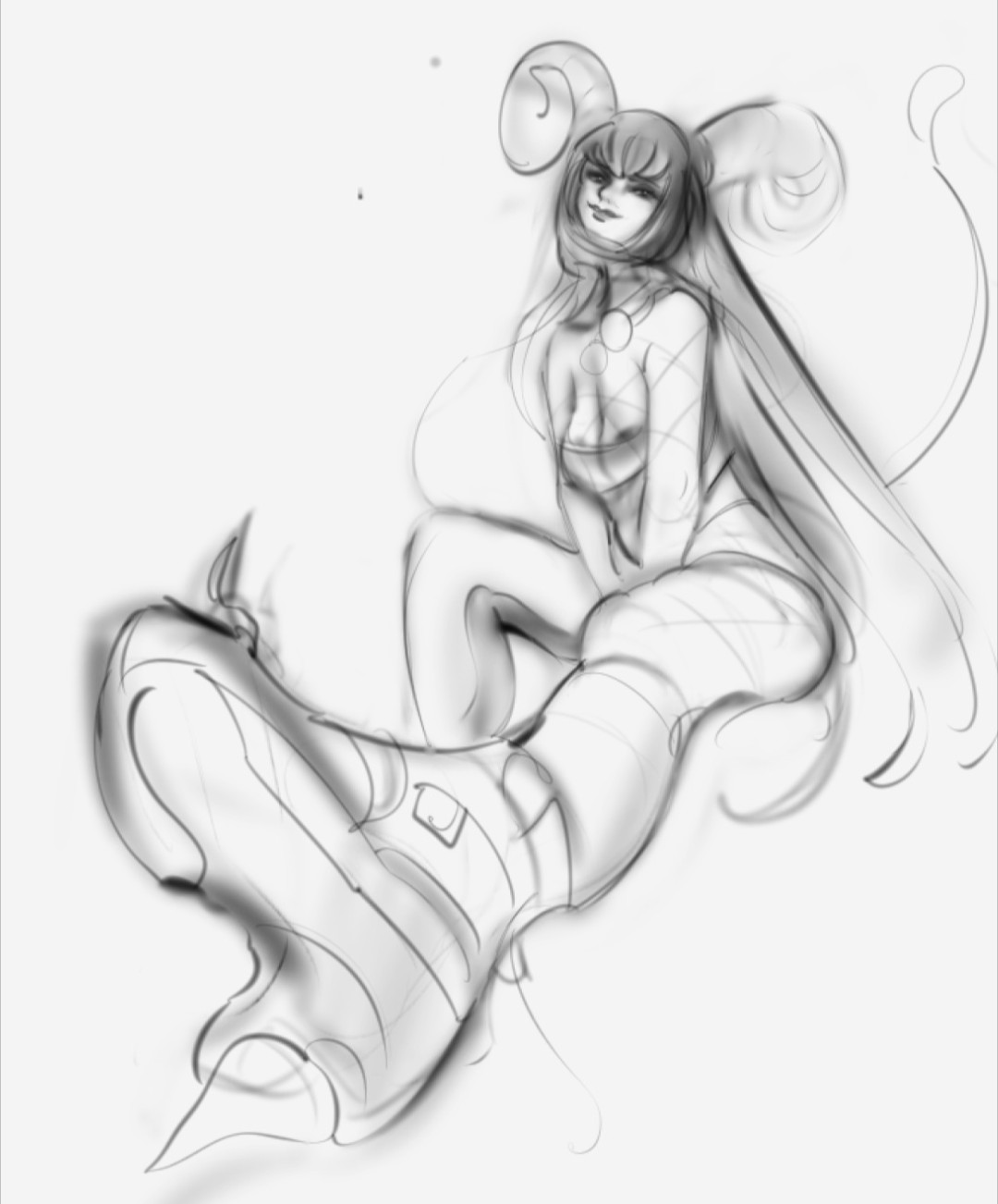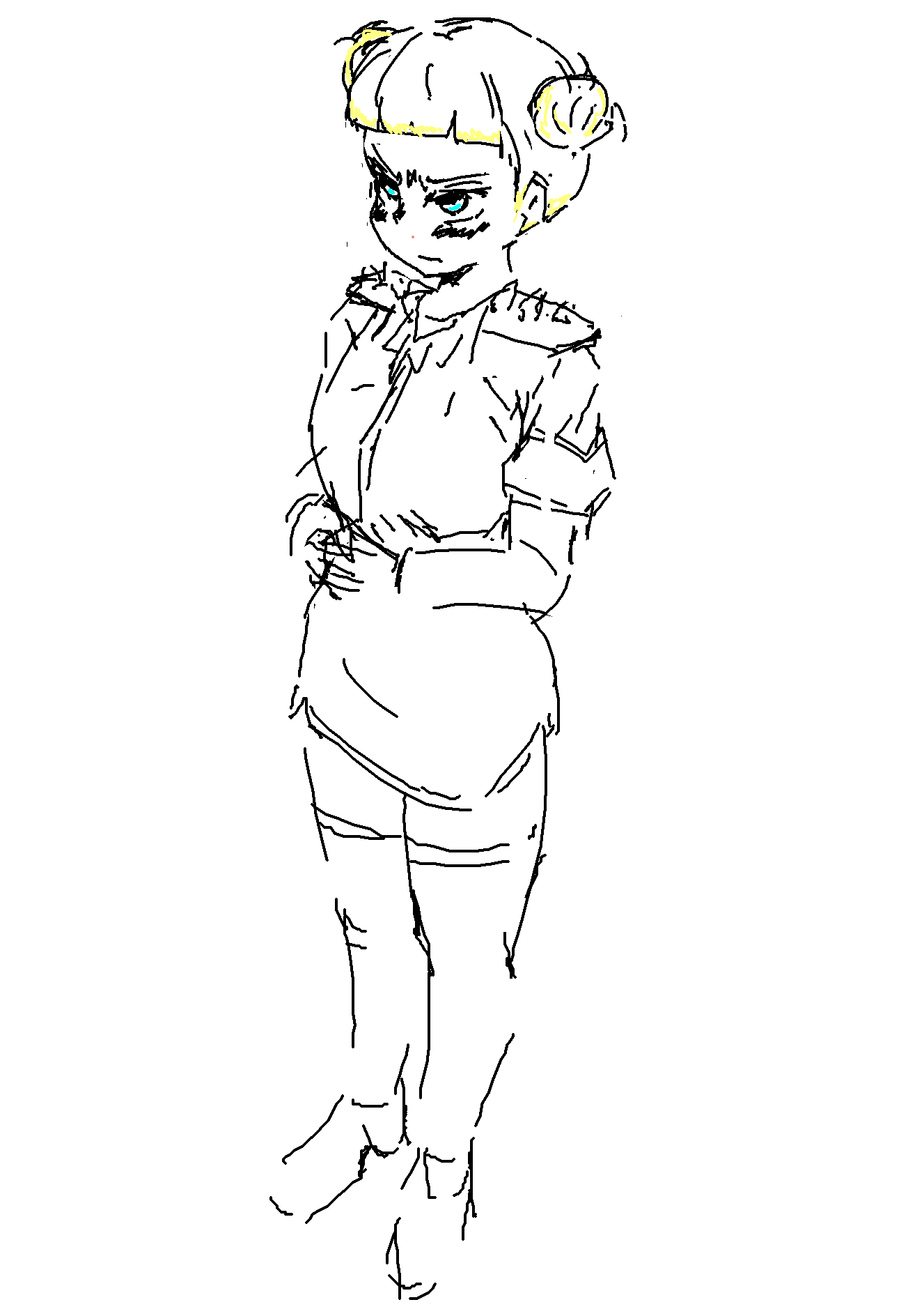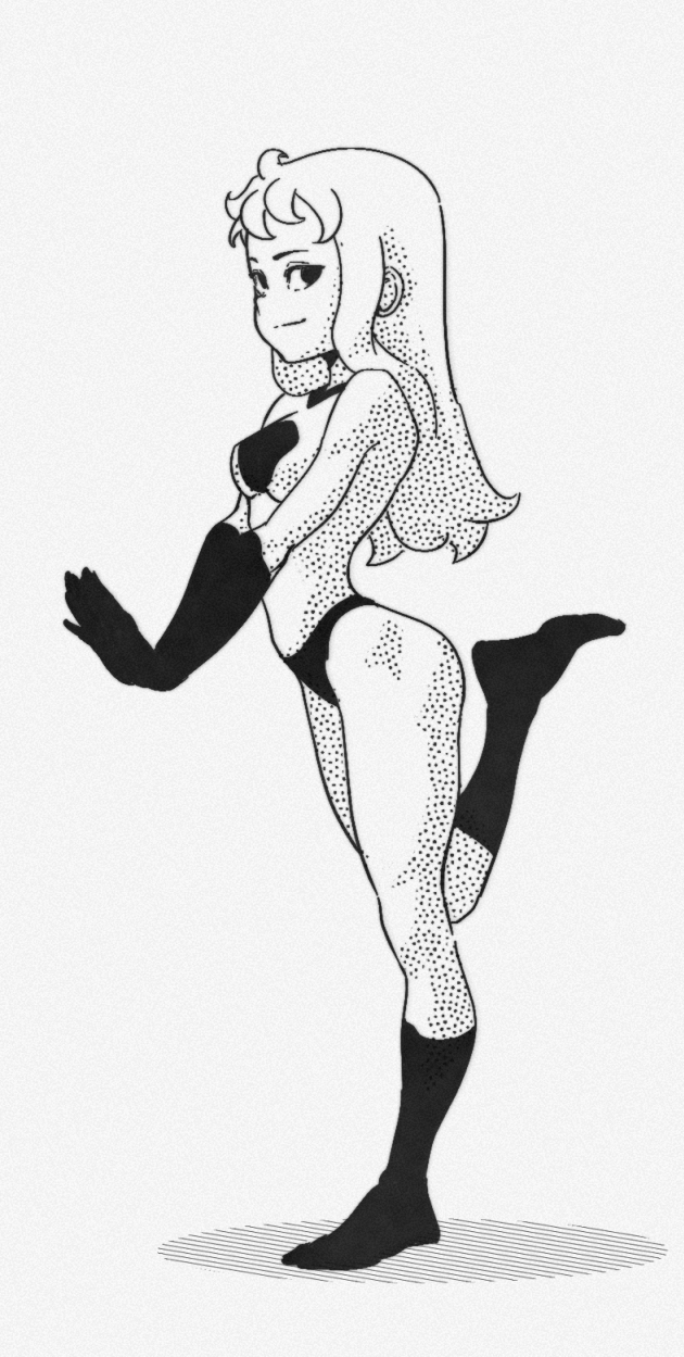 >>7812194That's the goal, but I think I weakened the perspective in some ways that it didn't sell the idea well enough. Things like the collarbone needing to stick out more, missing indication of the neck connecting to the body, the thighs needing to taper downward more, the belt being too flat, the waist being too wide, the skirt being too low, and worst of all the contour of her black gloves being opposite of what it should be. Still working through the issues. >>7812290Thanks>>7812563I don't really drink alcohol, I usually draw high when sketching because it makes me less risk averse and gets me to try more challenging things. It helps me hyperfocus too. Unfortunately it also nerfs my perspective and anatomy.
