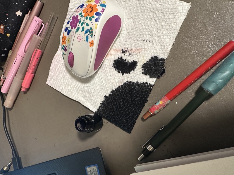 >>7813171no, dirt cheap fountain pen ink. just a mess, but its water based at least. i was smart enough to put it in a smaller container (or not smart, its lightweight now) and i didn't refill it after the last spill. the bottom of my mouse is turning black