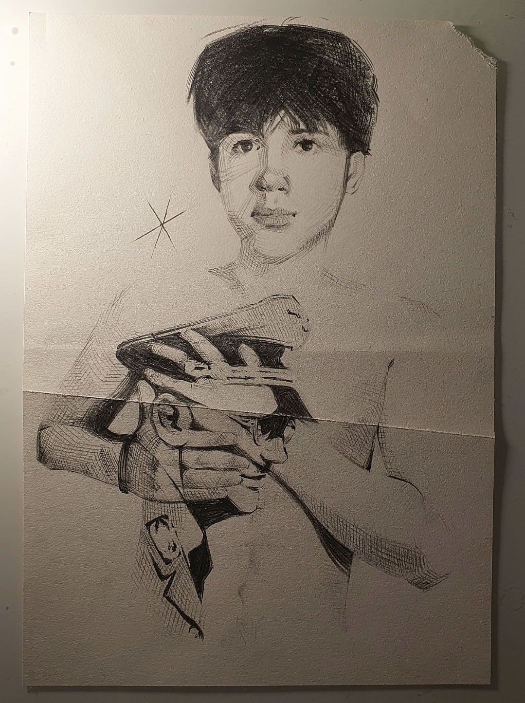 That being said, I've made pieces that are entirely made of a collage of references, yet I'd still consider them to be very personal. Because the adding and combining gave it a meaning that is almost specifically me. Here for example, a pencil self portrait that can be both seen as me holding a certain someone close to me, but could also be seen as a kind of "reveal", hence the nudity.