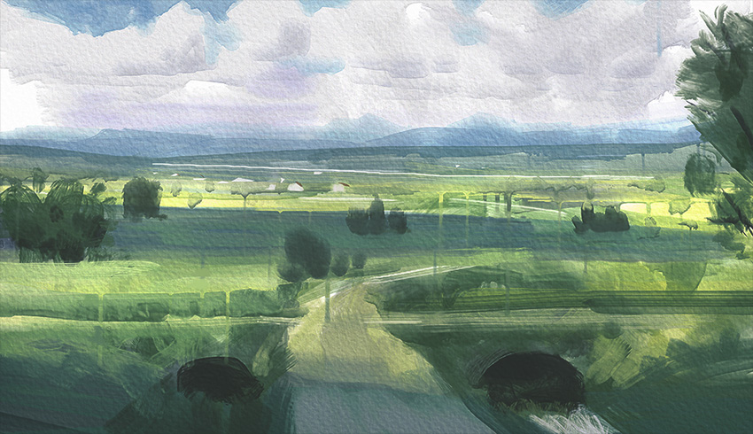 I was scrathing my head about what to do with the right side. A simple sky with a bit of a subtle gradient ought to work. Thank you for the suggestion