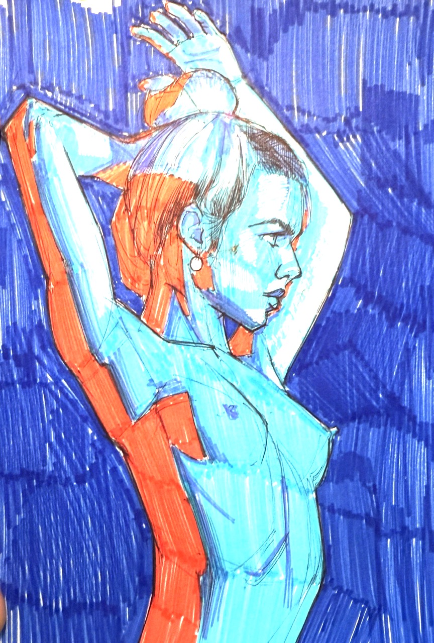 Done during life drawing. I like what I was able to do with relatively simple hatching, also the face is much nicer than last week.(Swear to god it better not rotate the image on upload)