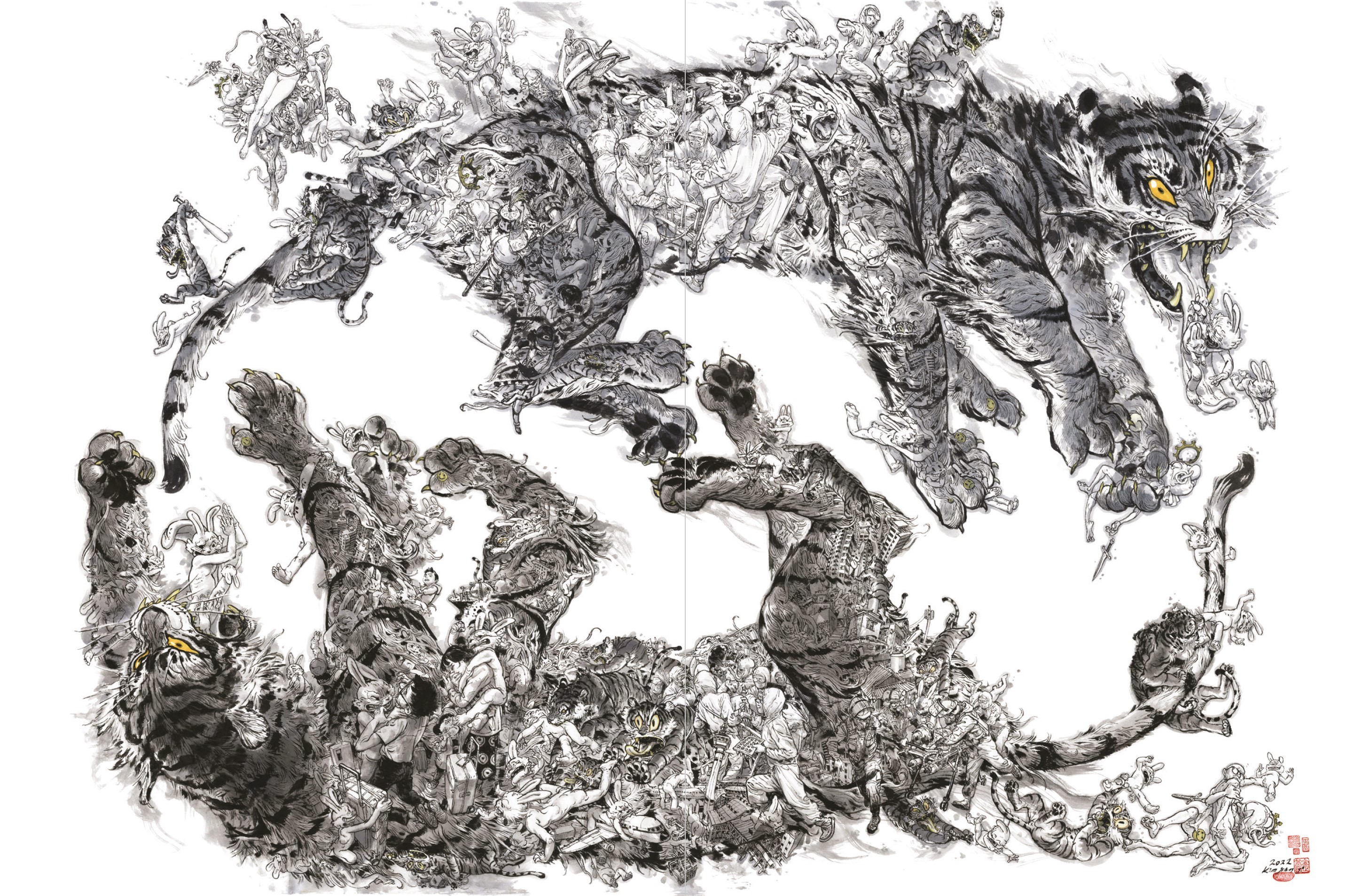 >>7840782>Yoo, KJG here with take 10,000 of a bunch of tattooed naked chicks and a tiger in a bomber jacket floating in an empty void, please enjoy!!