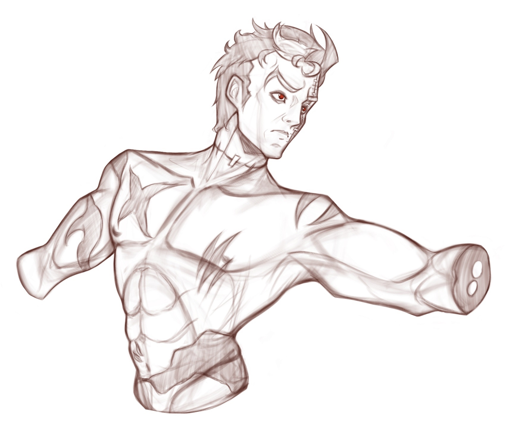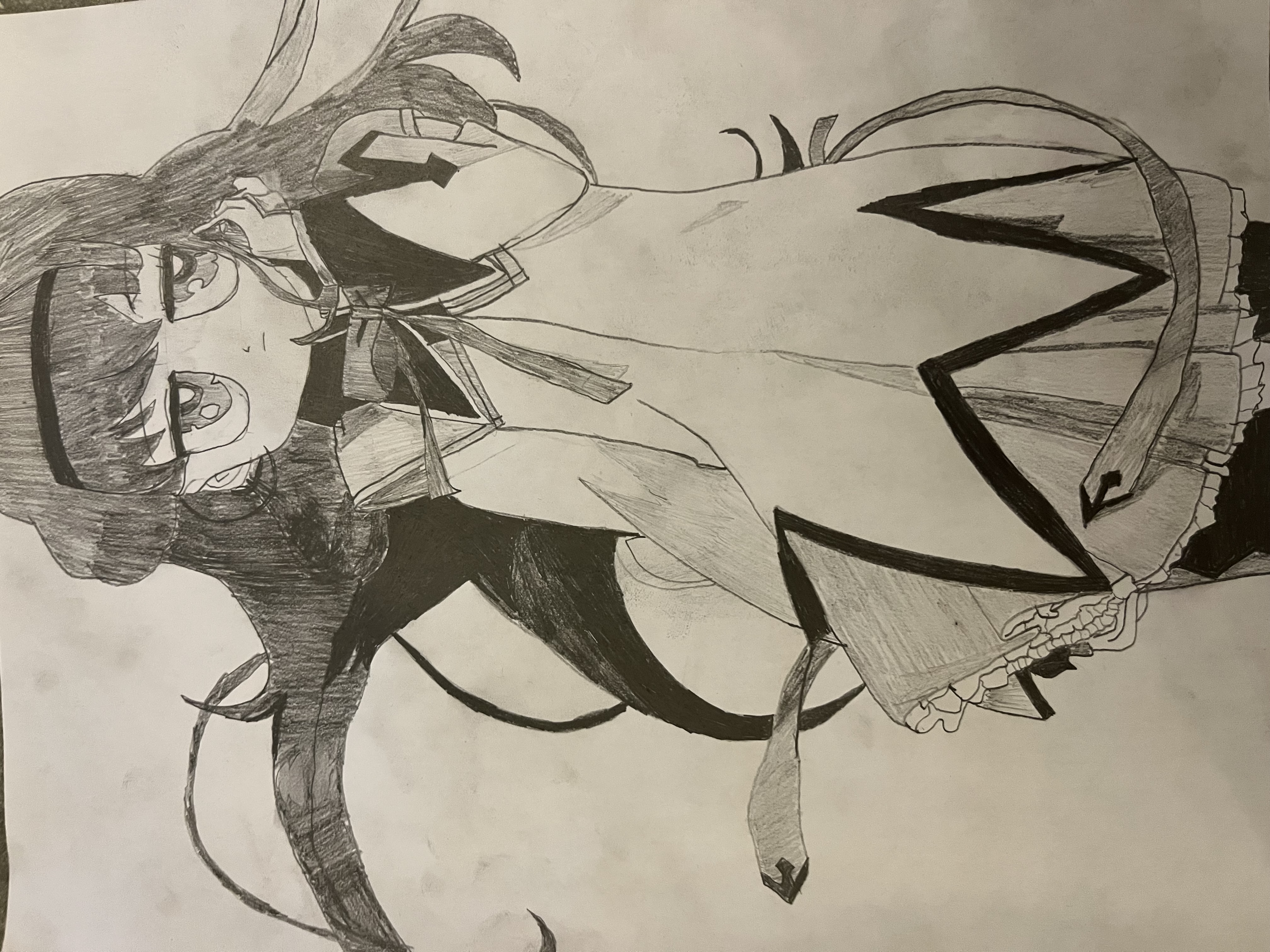wish i could finish one (1) drawing instead of leaving everything <80% finished bc i start hating itidk if this will count as gore or w/e, just some edgyslop. i feel like the armpit and face are fucked amongst other things, this was far beyond what im capable of