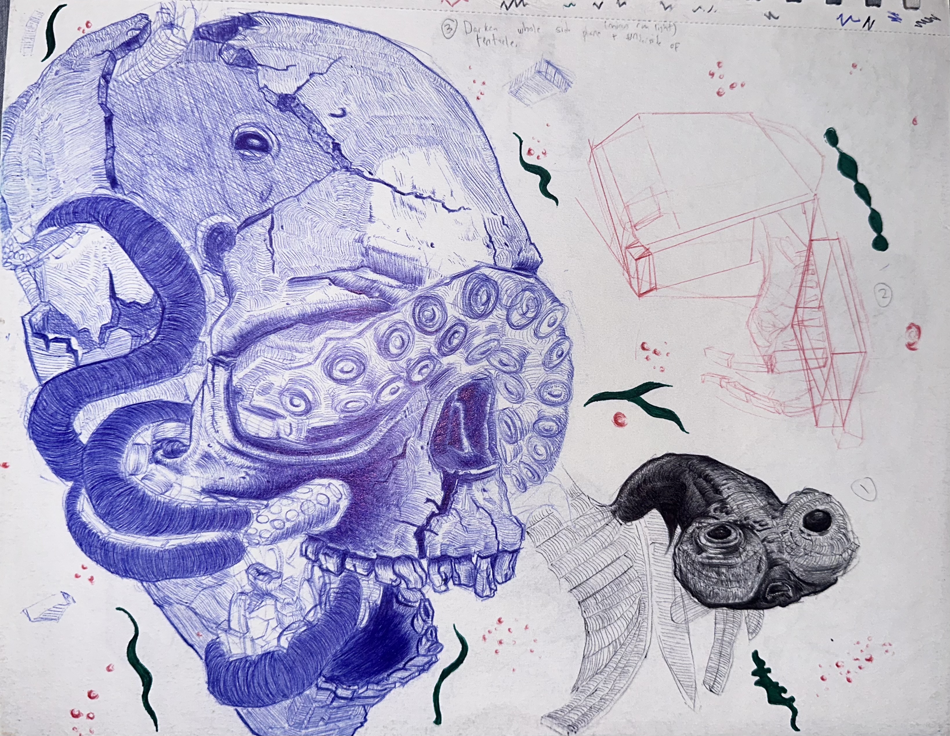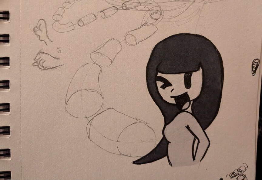 tried doing inking with a ballpoint pen rather than my marker bc I accidentally dried it out and need to get a new one noticeably terrible, I think maybe a thicker line pen would've helped