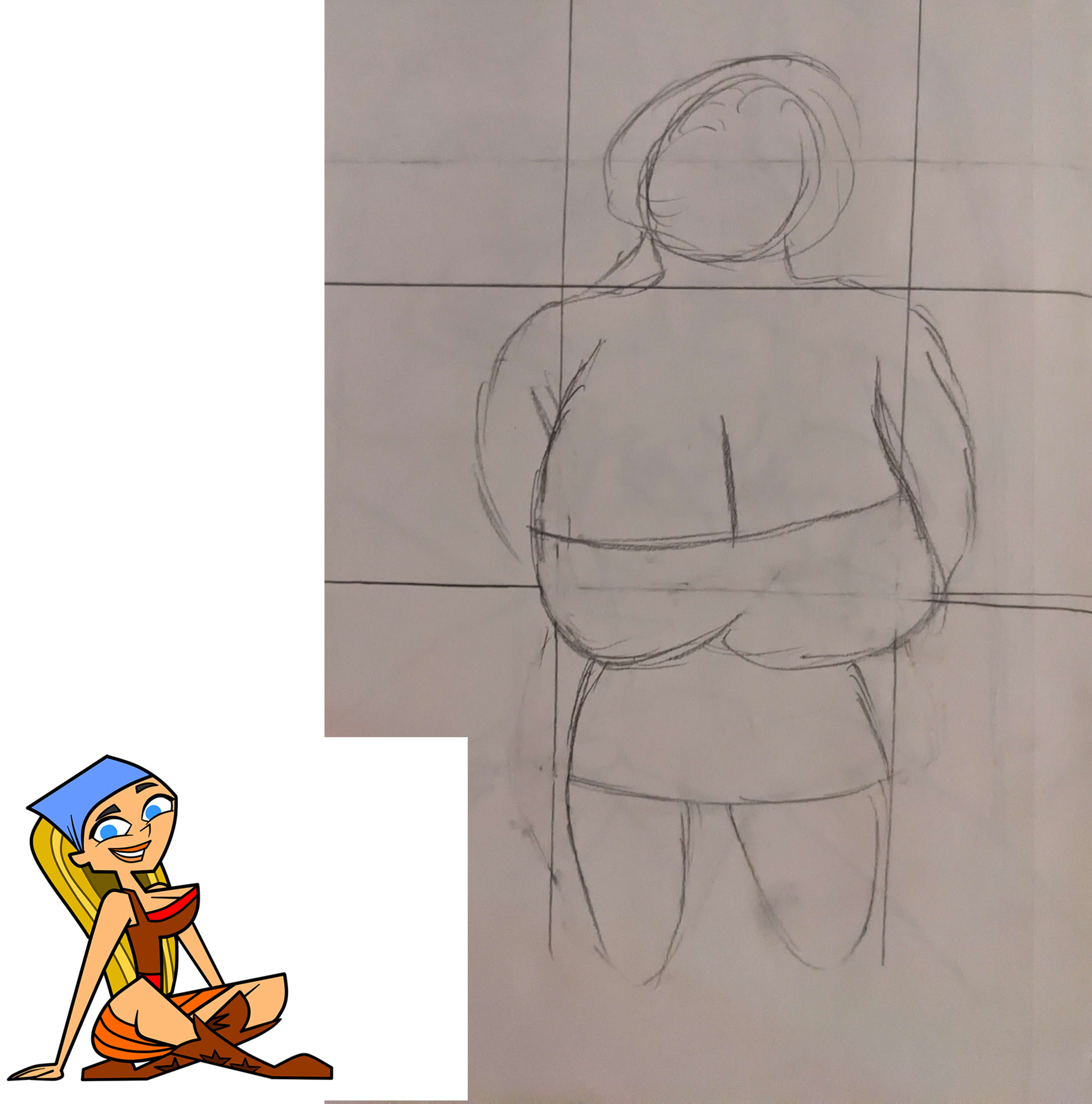 >>7846985Body/legs are messed up but you retained a lot of the cuteness in the head which is a lot harder to get right. The saw tooth shape of the teeth are very cartoony, try to find a better simplification that doesn't follow a uniform pattern if you want something closer to the reference. Keep it up.>>7846989Most of her right calf and her whole right foot wouldn't be visible in this perspective. Looks more or less fine, just add an indication of her calf as her leg disappears behind her. I think you're missing some lines for her right arm, it looks like it disappears in between her torso and the bear. The bow knot being on the back of the teddy bear seems unusual imho. >>7846991Nice pudgy cowslut.
