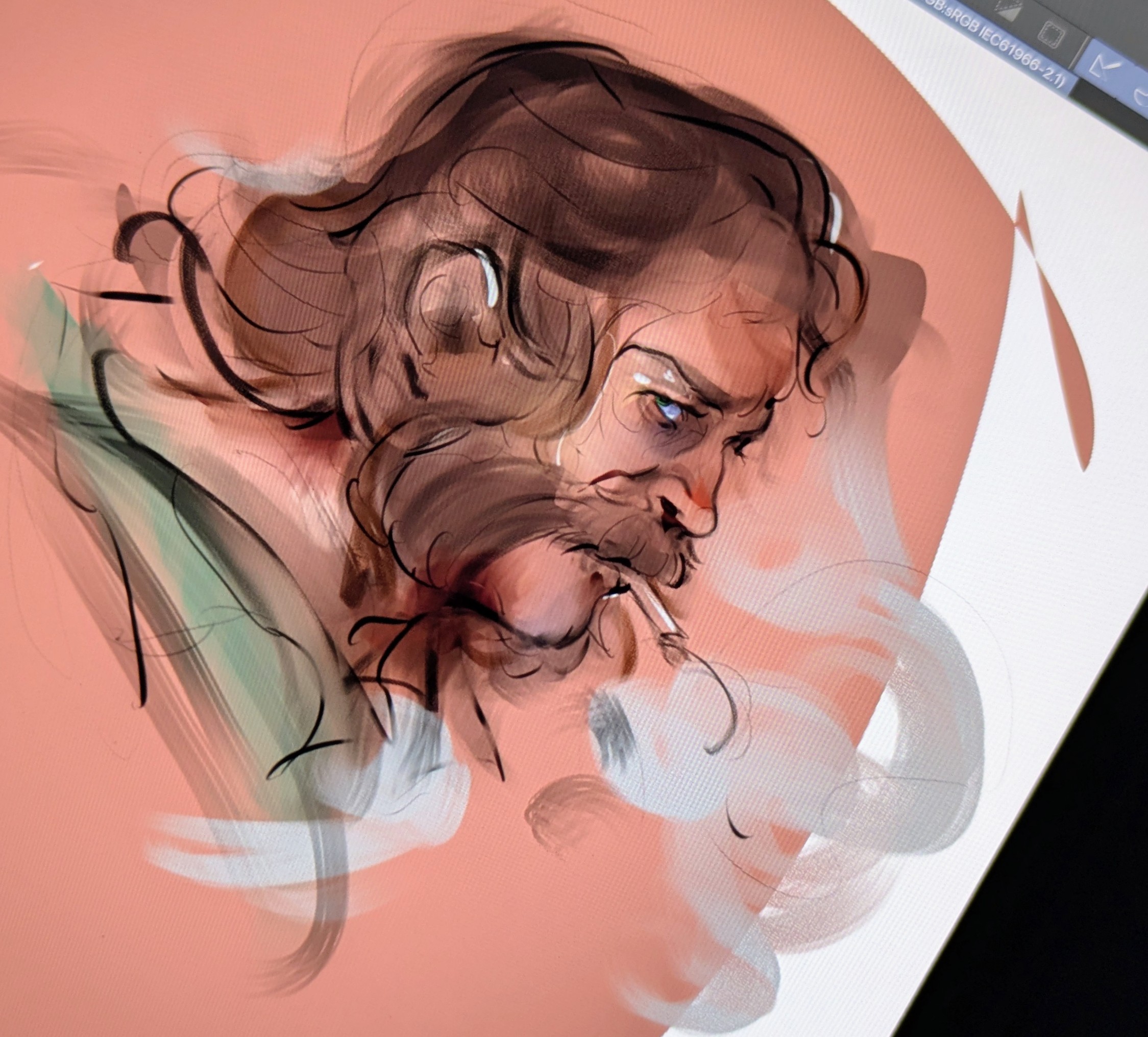 >>7846778The face is kinda lookin' flatI'd get the nose and beard to point left a little bit o algoIf you're digital, flipping the canvas horizontally will work wonders.