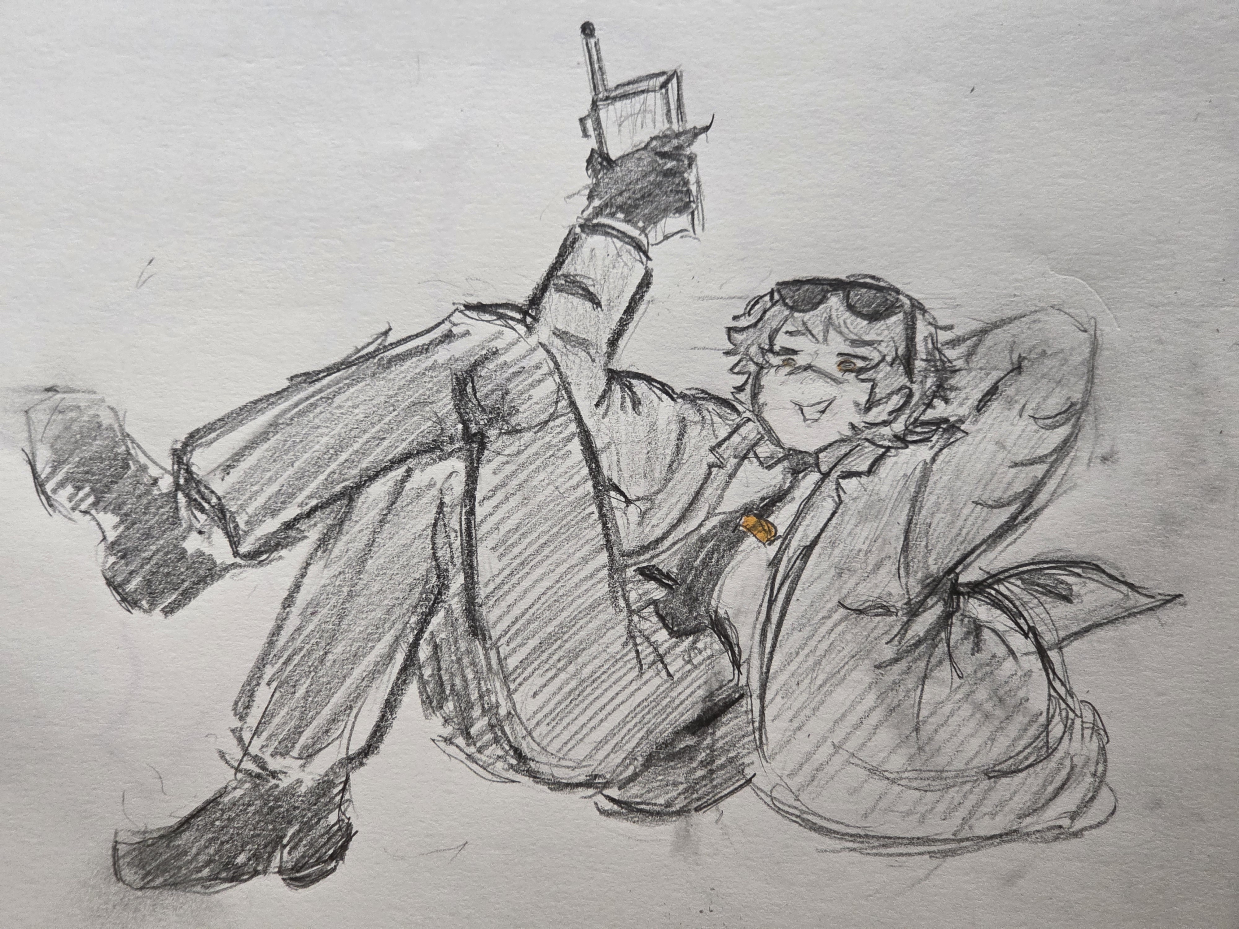 Omg!!! Thanks a bunch for drawing him, he's super cute lounging around like that! I'm flattered you enjoyed my raptor man <3