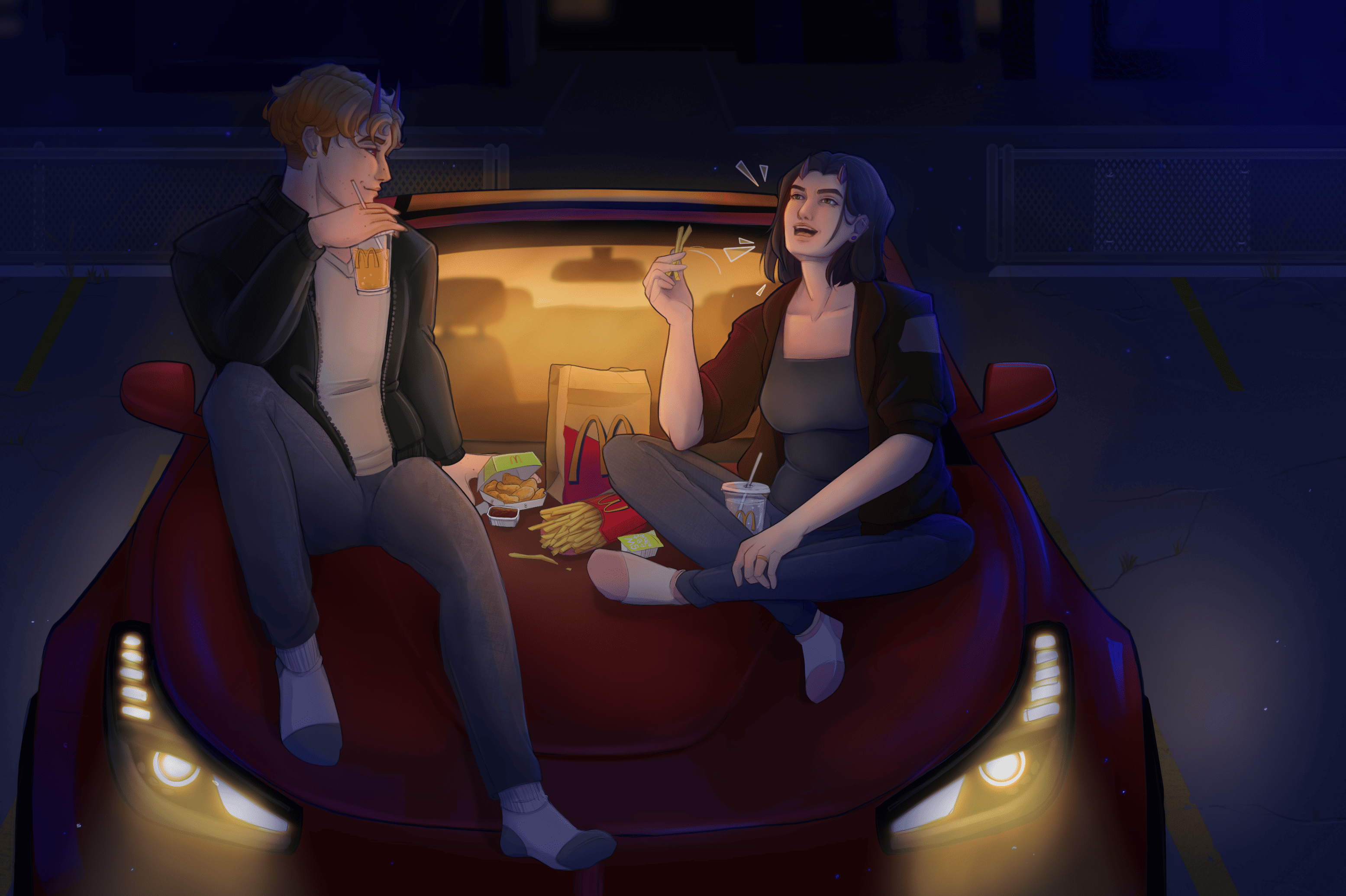 I'm honestly surprised you remember me drawing you characters. I really adore your work, it's so visually stimulating and fun to look at, both the shape language, the creativity of your designs and colors are always such a feast for the eyes and so inspirational. So I couldn't resist drawing your character, haha. I never expect to get anything back since I know people are busy with real life obligation but I always get really happy when I do get art.