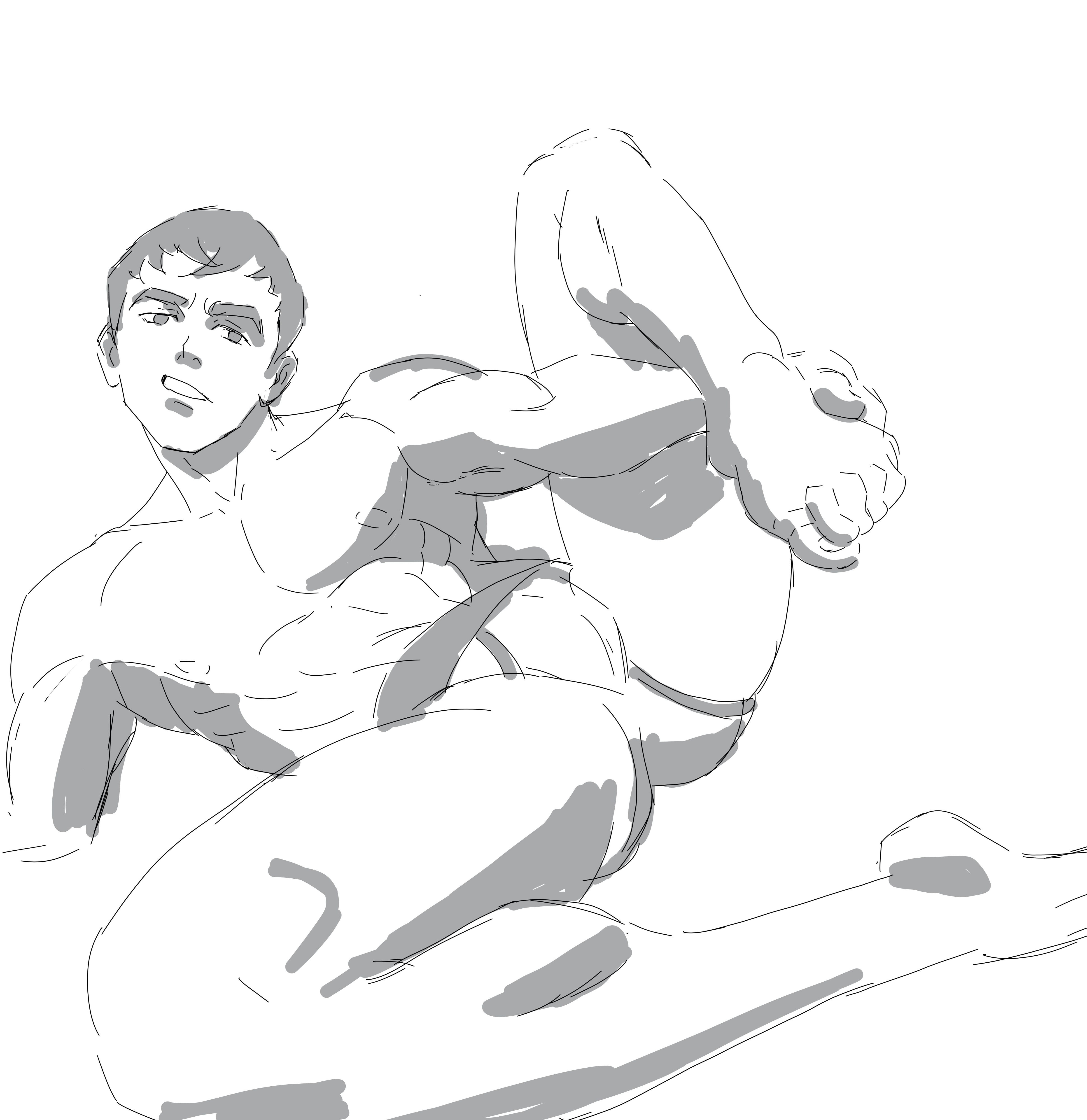 >>7854476I feel you about that one. I'm gonna let it rest and see if I can spot a better solution for that. It looks a bit disconnected, which might be a perspective error on my part.>>7854478Here's one of my portraits, it's very light on lines, but it should make it a bit clearer. My method is to find a brush you really "fuck" with, as the americans say, and learn it to bits. Then, it's all about using it to give the impression of light, form and texture. I personally really enjoy drawing with Bristles-5 Flat and Pencil-5 Tilted.Long strokes and using my shoulder also helps alot, mechanically, when making linework.