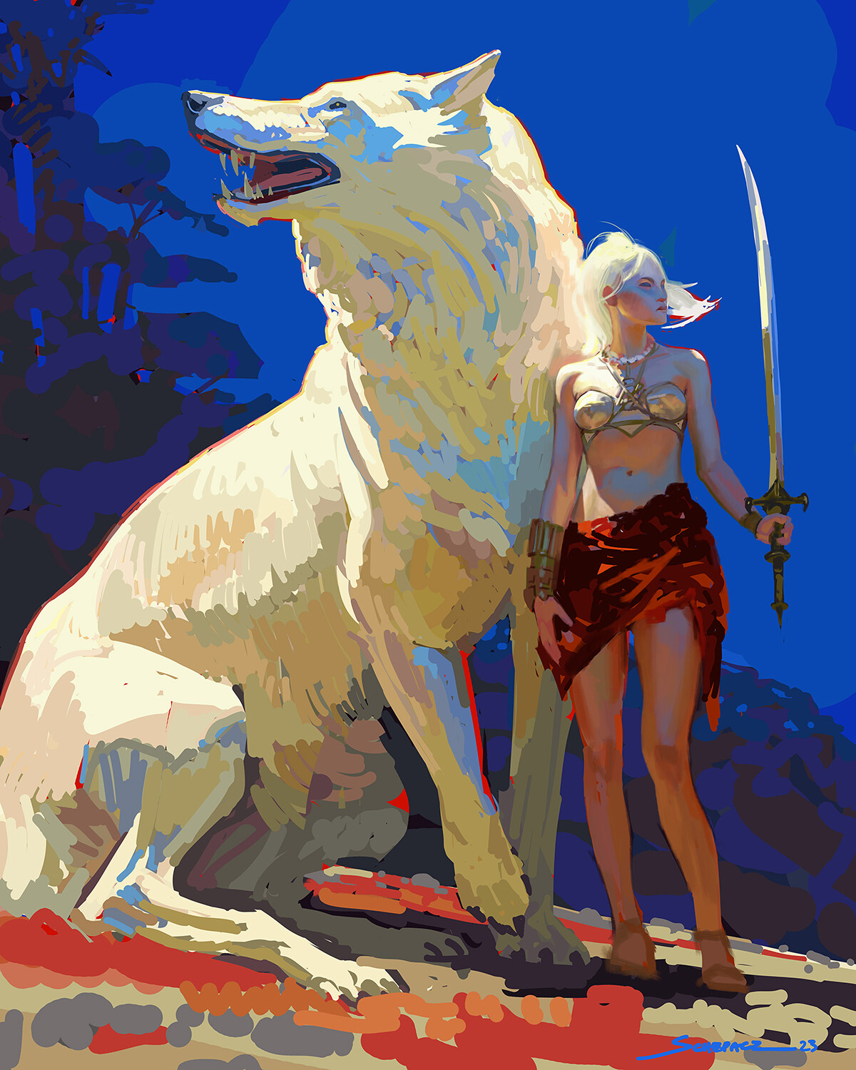 >>7853871It's because saturation doesn't mean extreme contrast in values. It's why value control is taught and so important to learn before you start thinking about colors.