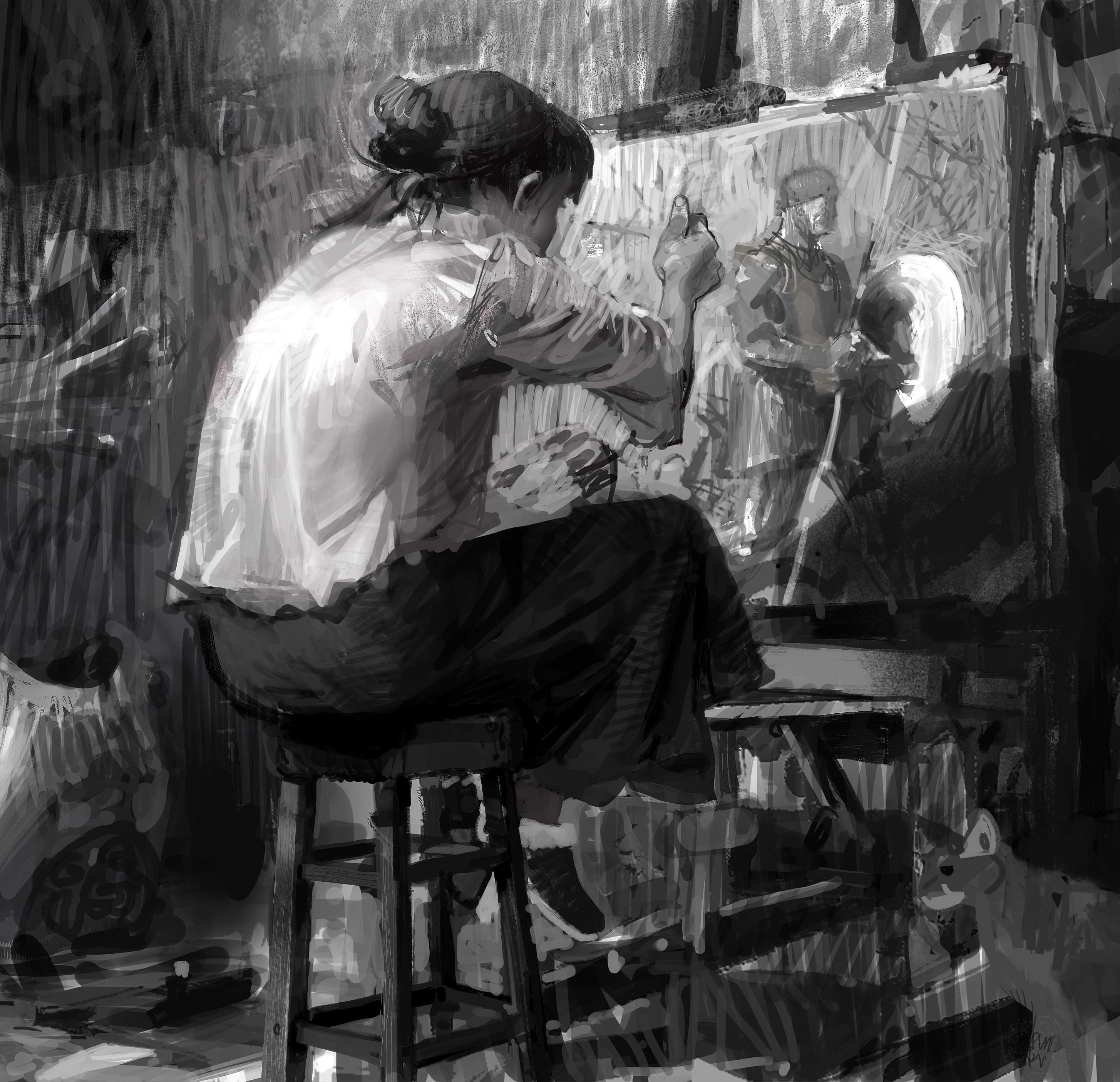 >>7855156the form is good, if you take a smudgebrush, you can get the "clean" result, but this style is actually really good, since it shows that the artists understands the values.tldr, artist good.