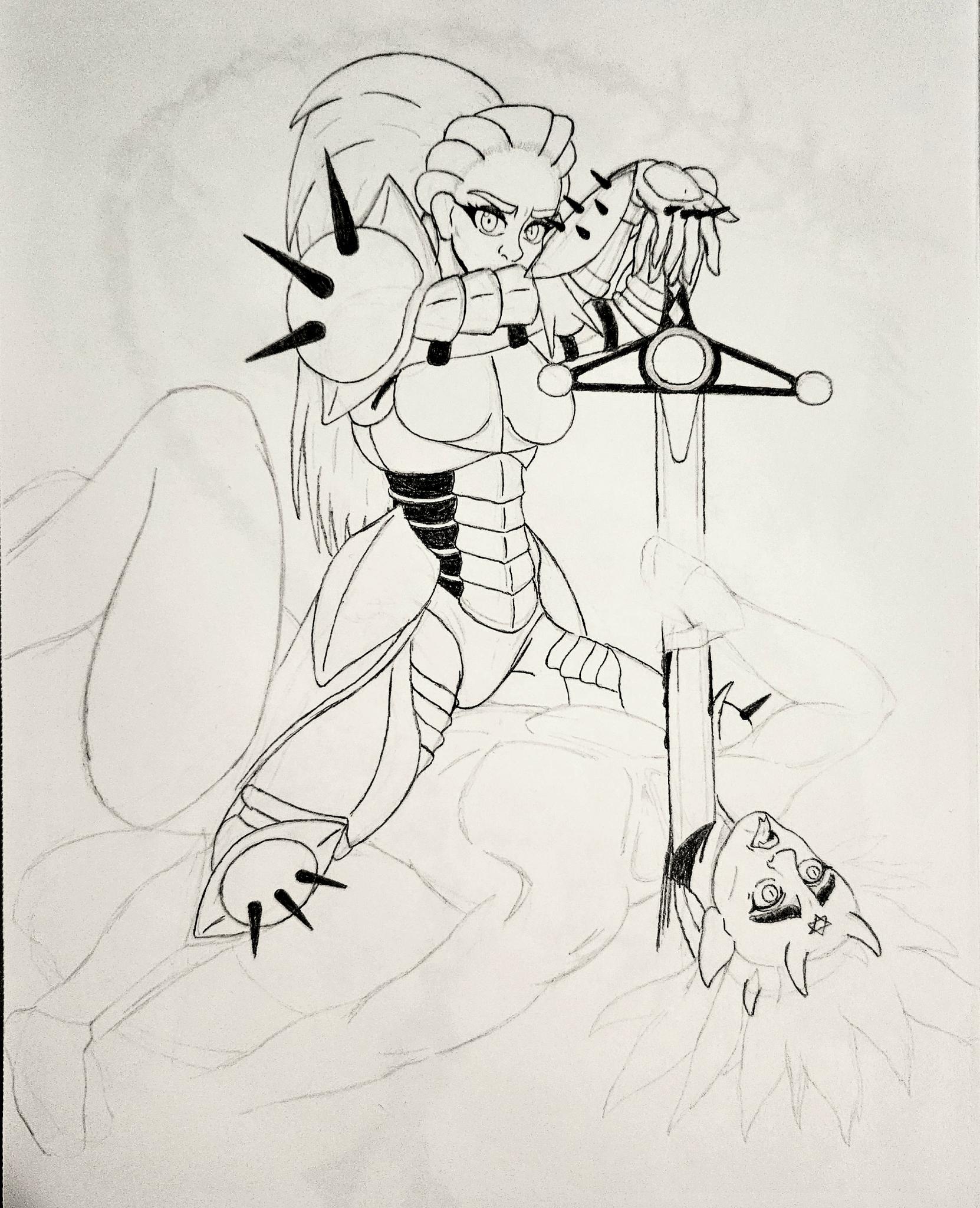 >>7856339>>7856341Thank you anons. Face is definitely the hardest part for me but these are still much better than when I started. I like the eyes a lot but nose and mouth are the worst for me along with hands. I like her armor design for now but I will definitely try to make it more conforming.Here's a final work in progress of her silencing a demon.