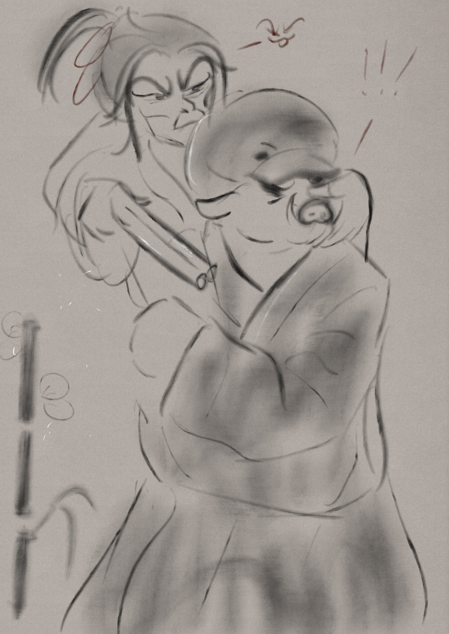 here's a failed attempt at colorig the drawing I posted last thread. I'm gonna share the canvas export, perhaps someone would bother to tell me how fucked my layer management is. I'm sure I can render, if I figure out a proper workflowhttps://files.catbox.moe/aymiug.ora