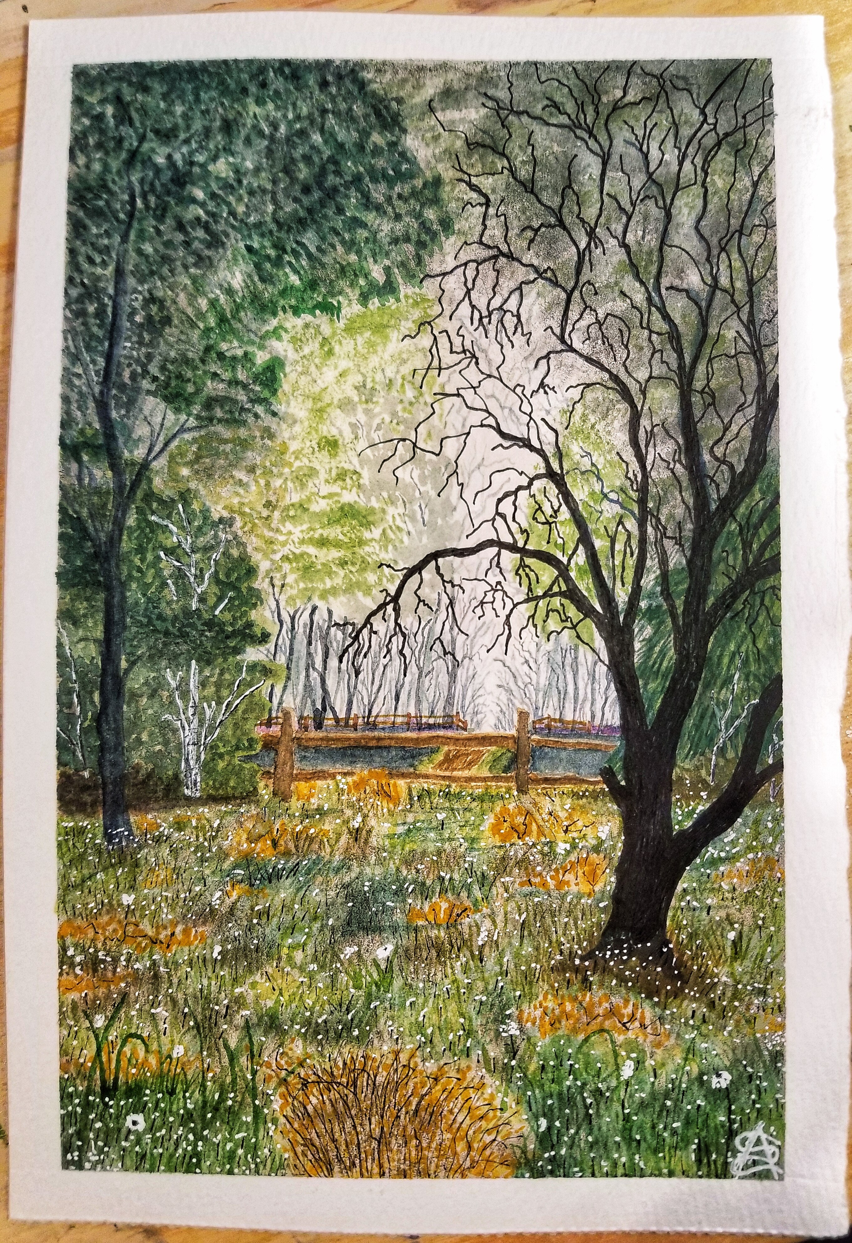 I got new brushes and a white gel pen the other day. This is my first painting with them.