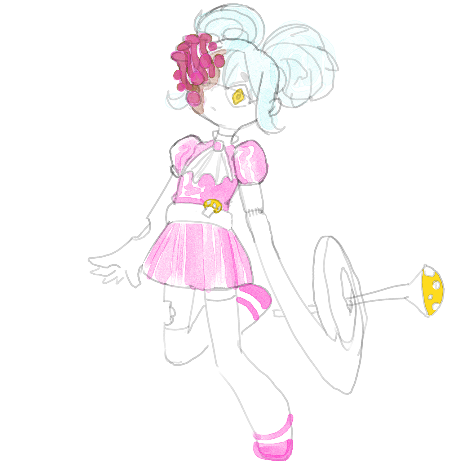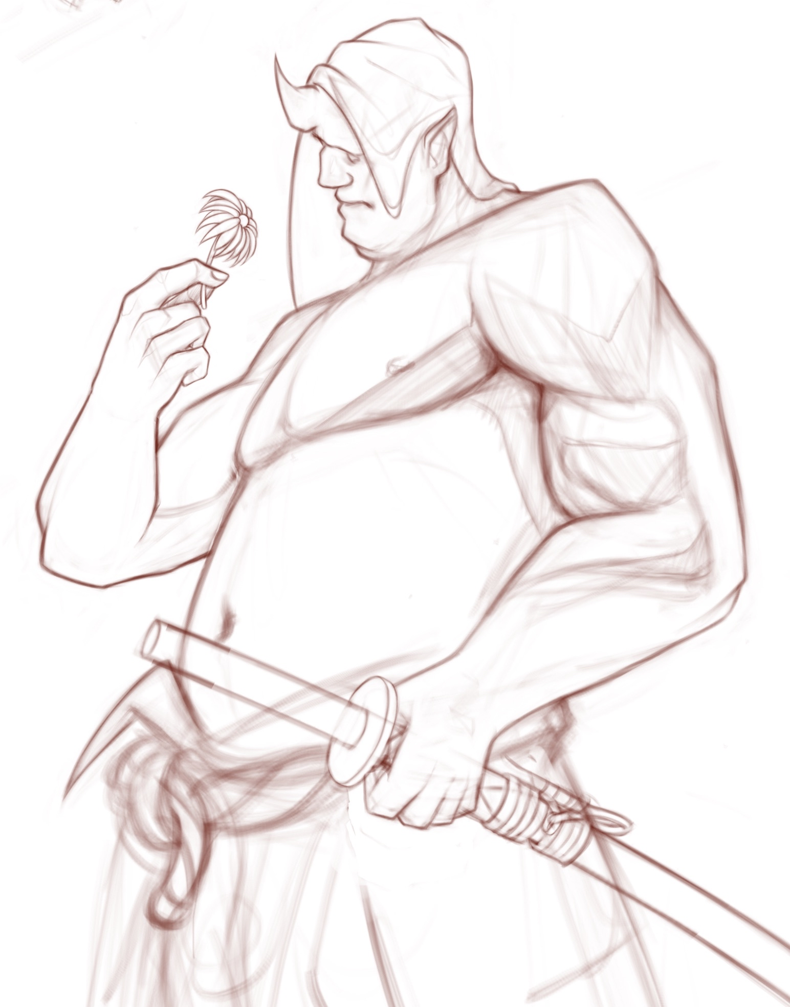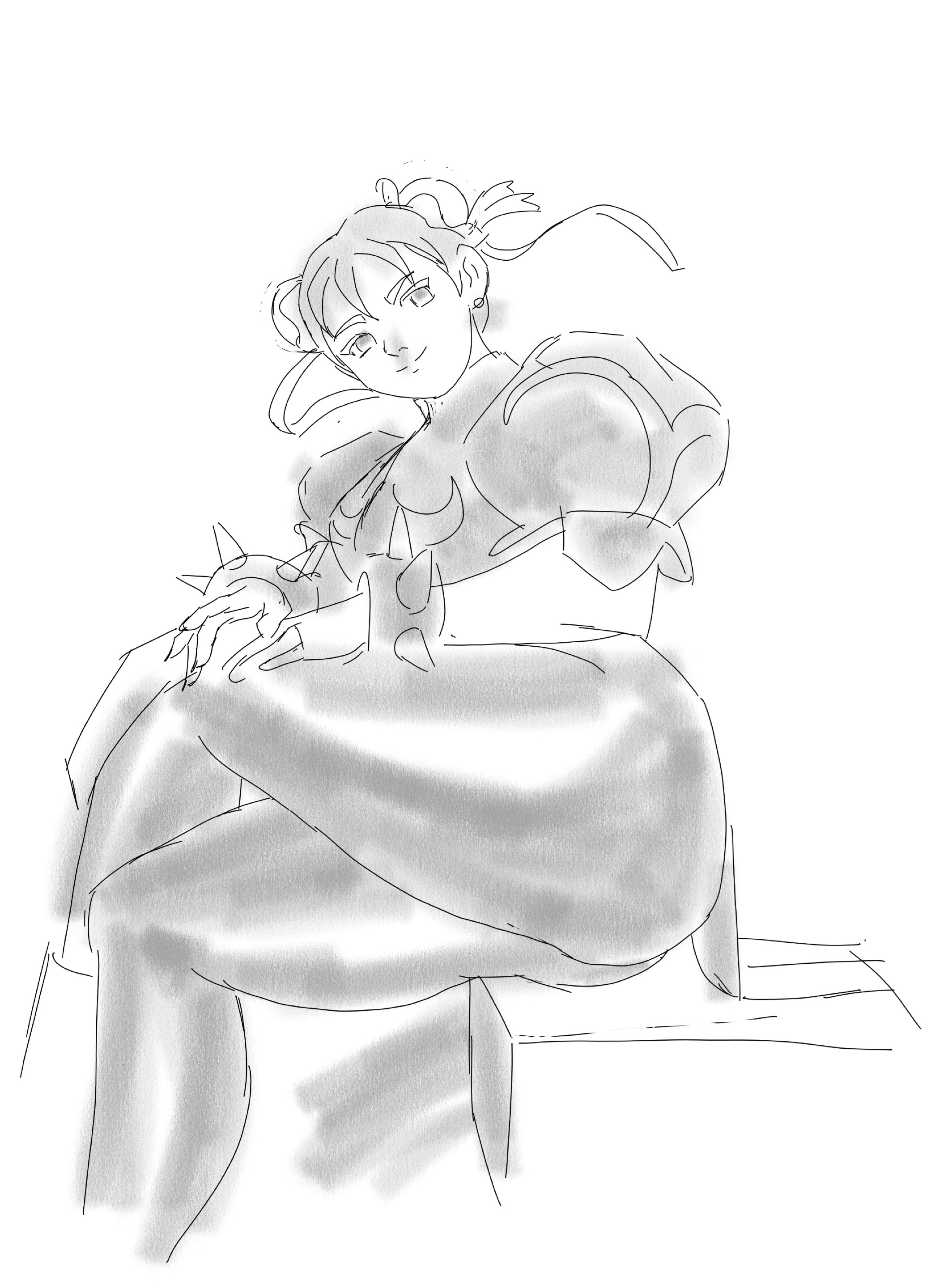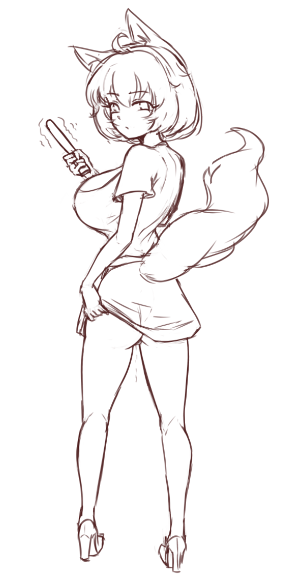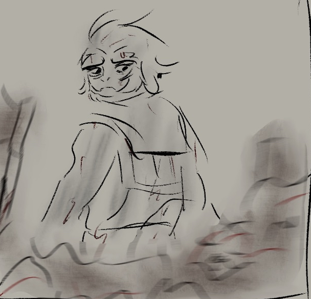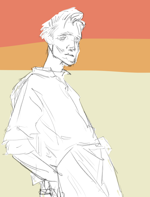 now that I've drawn boos and simple mario and kirby characters for a couple weeks to get used to digital I wanted to try a sketch of a more complex character I likeI still know fuck all about like all of the fundamentals and bodies and anatomy are really weird I feel like. Still, I'm going through fun with a pencil and I'm doing it.