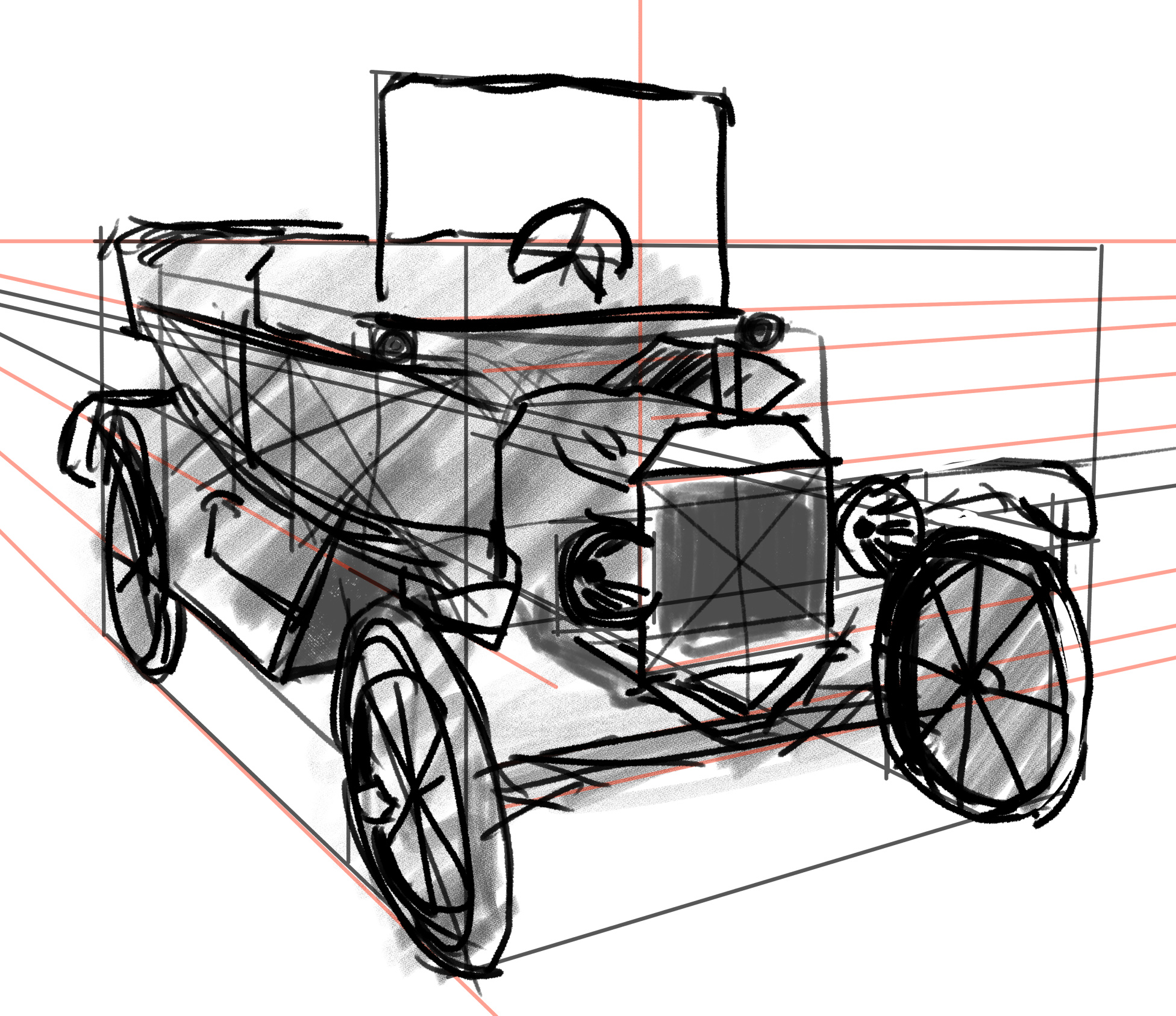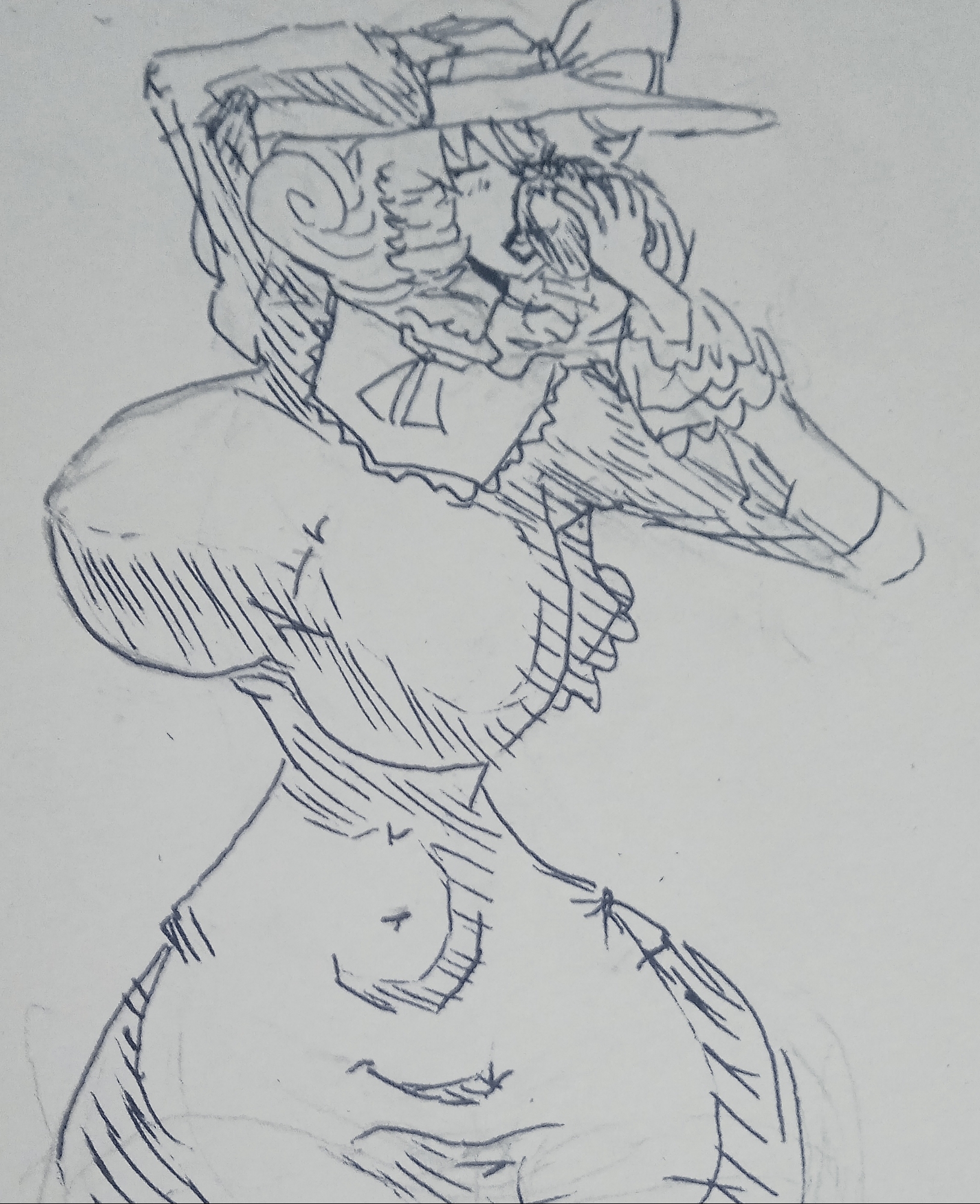 Very rough construction sketch. Not used to this kind of pose