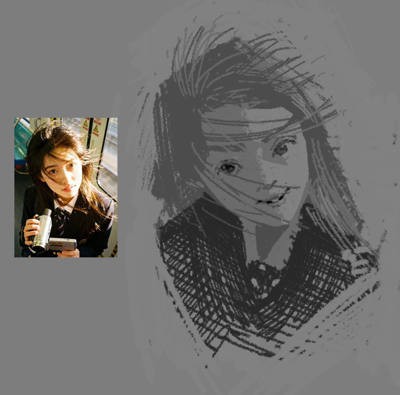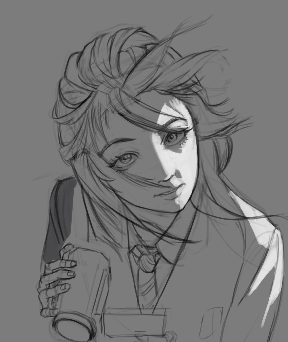WIP bump. Need to get out of the house and clear my head a bit before I come back to it. Really like the way the light hits the eyes in the reference. Having trouble guaging how dark to make the shadow side of the face and how light to make the light side.